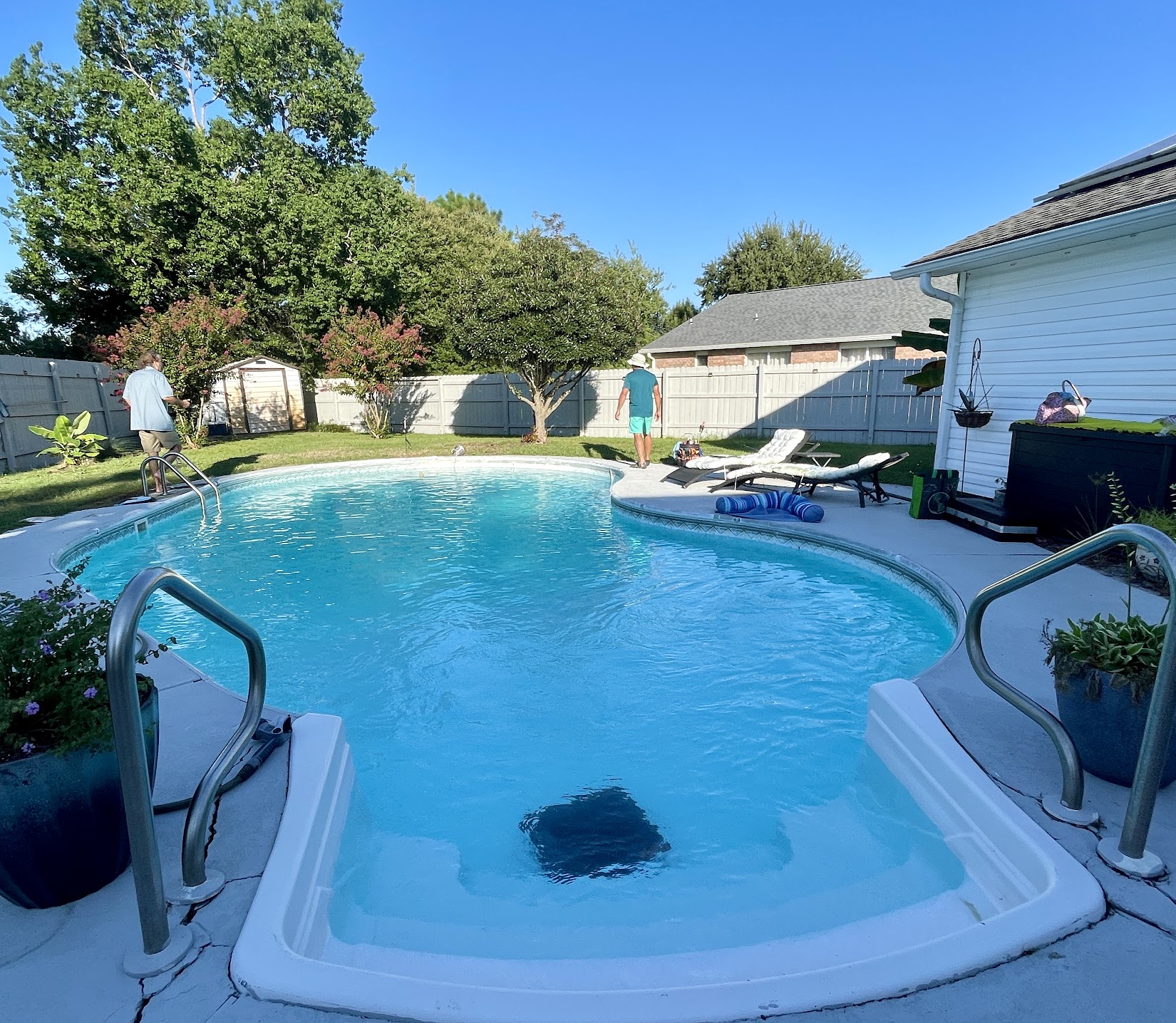 Chris and Darla promptly returned my weekend call and scheduled with me for the coming Tuesday. On the morning they were due to arrive at 8, I was sipping my coffee and looking at the weather radar when my phone rang at 7:45. Chris told me they were watching the weather (which was pretty bad) and would come as soon as a line of thunderstorms passed. He was as good as his word and came about an hour later. They spent about 3 hours in total, checked every line in and out of the pool and pressure tested everything. I was happy to learn all the plumbing was sound and my water loss was from four small leaks in the gunite, all of which were patched. I might have found one of these leaks on my own, but the other three, not a chance. They fixed my problem quickly, efficiently, on time, and kept me informed of the status the entire time they were here. I'd hire them again in a second.