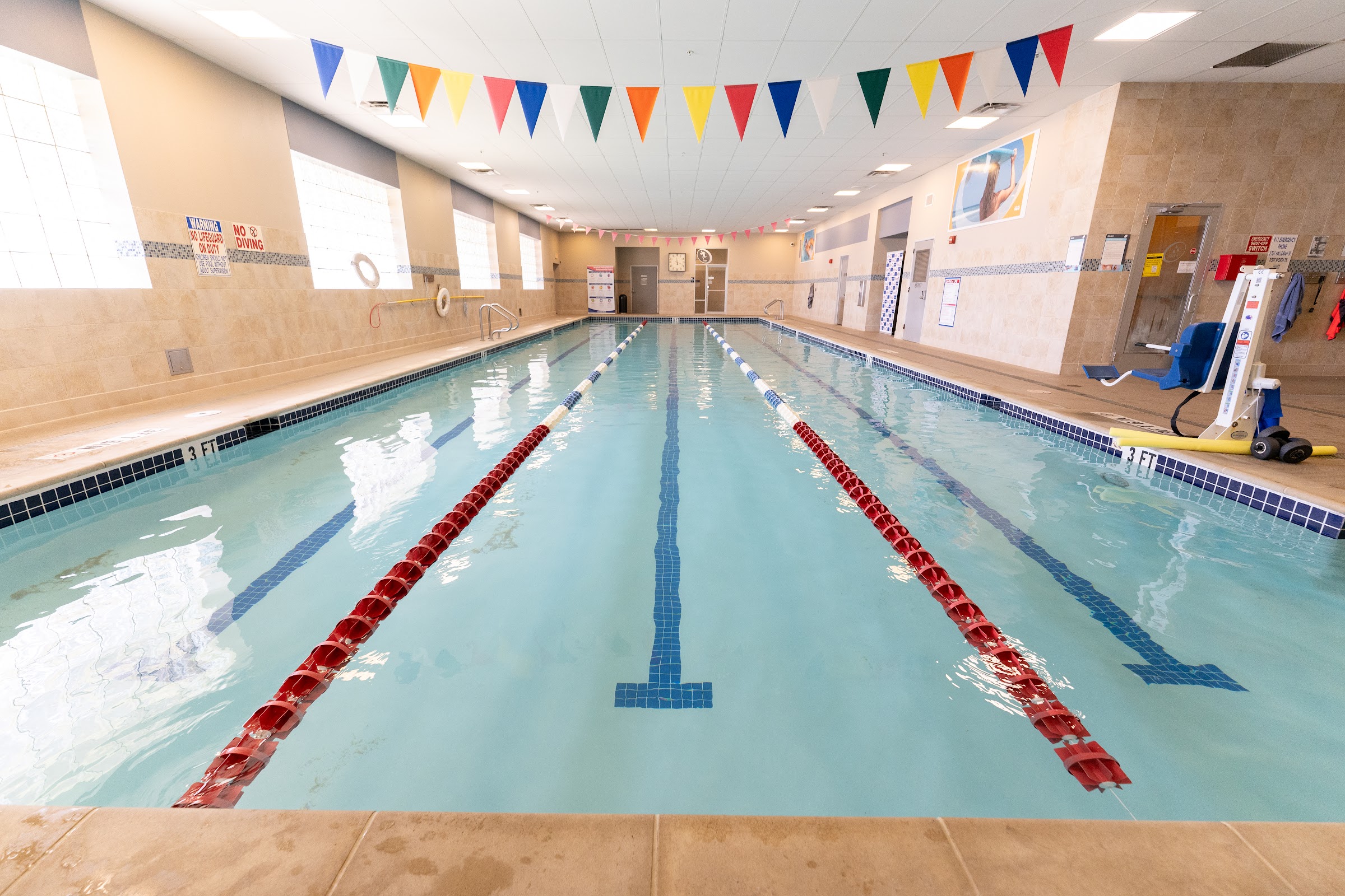 The specific temperature of the swimming pool(s) and whirlpool at this 24 Hour Fitness location is not publicly disclosed. Generally, fitness club pools are maintained at a comfortable temperature, typically ranging from 80-84°F (27-29°C) for swimming, while whirlpools are usually warmer.
