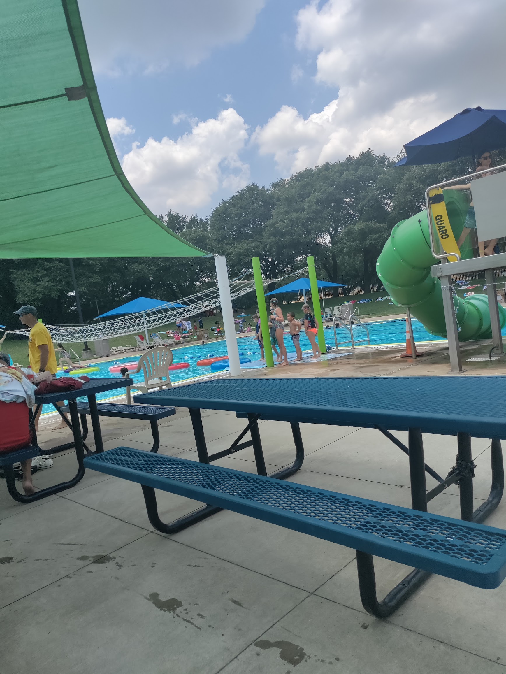 Pretty cool community pool, lily pads and the slides are fun for the whole family. Really enjoyed my time with my dad this Father’s Day here. Clean pool and lifeguards are attentive and respectful, price is $5 to get in and they have a snack bar too.
