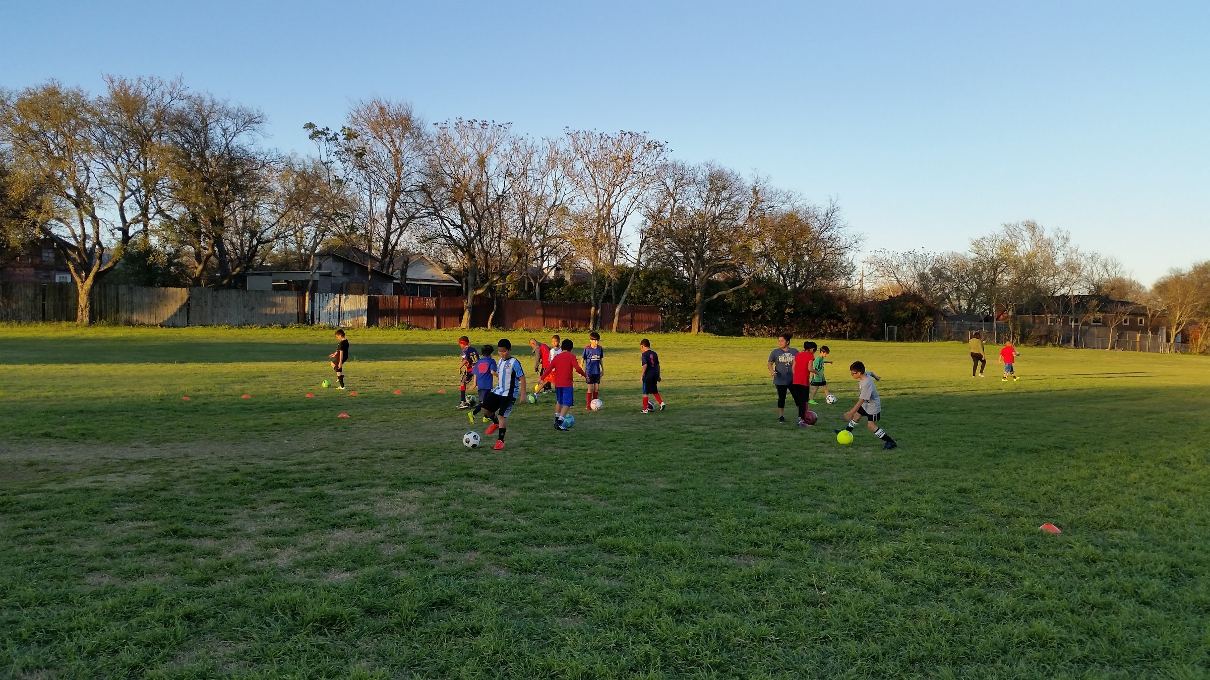 Relaxed neighborhood park, which features a pool, tennis courts, a playground and a soccer field.