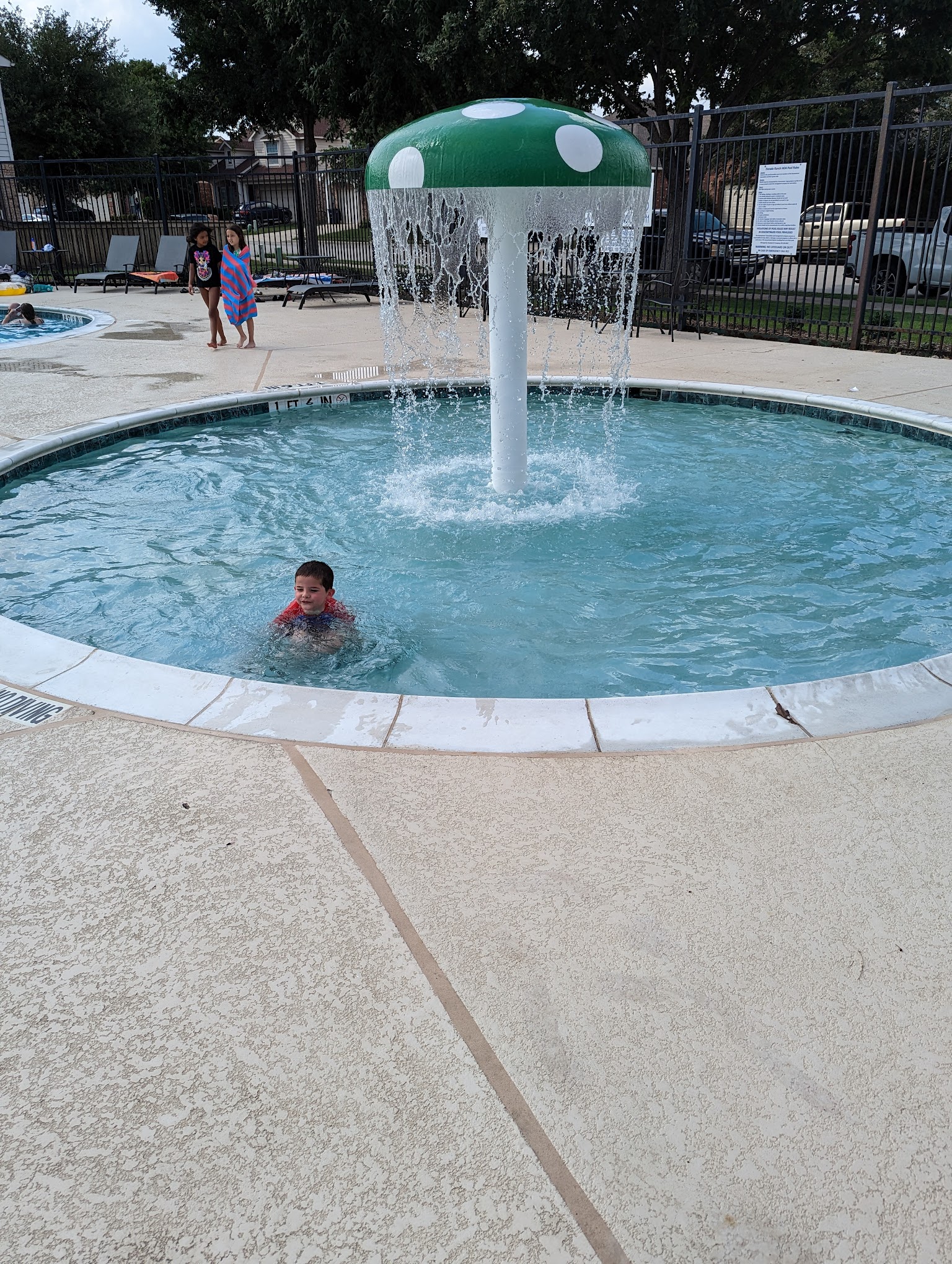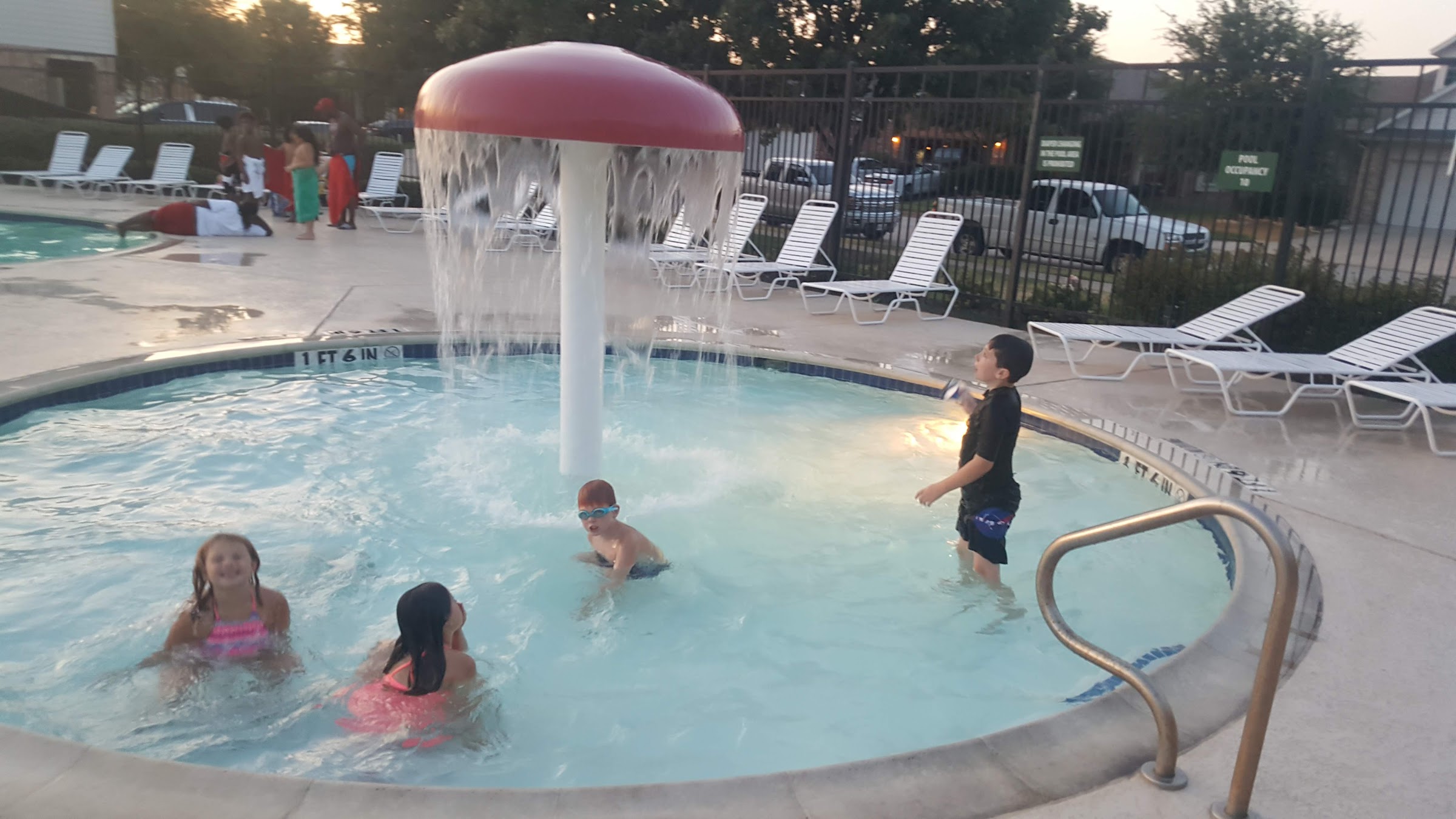It's a neighborhood pool where our daughters area, but it was not crowded at all. The pool was very clean & well kept.