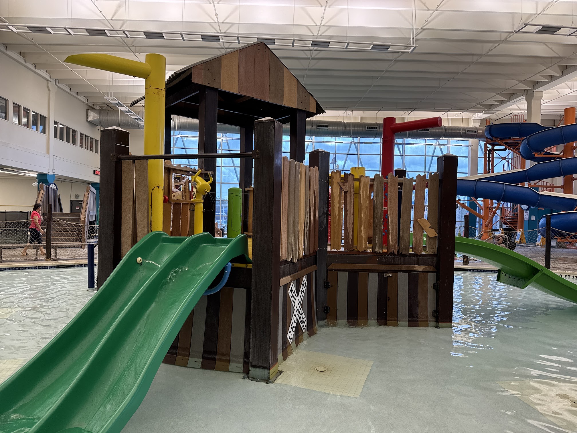 Family-friendly water park with a playground, a lazy river, slides and a splash zone.