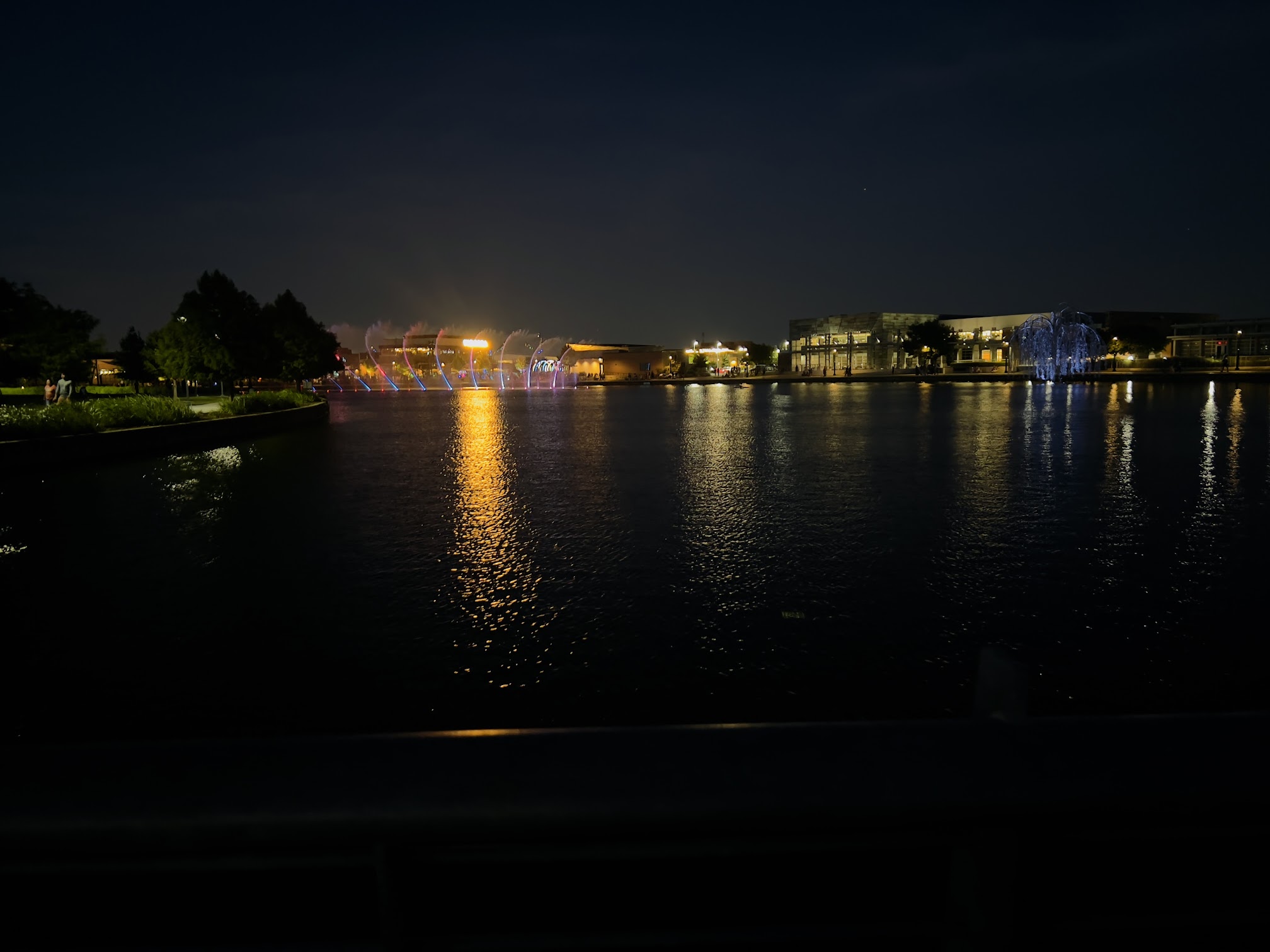 Nice playgrounds. Water fountain light show is nice. Clean park