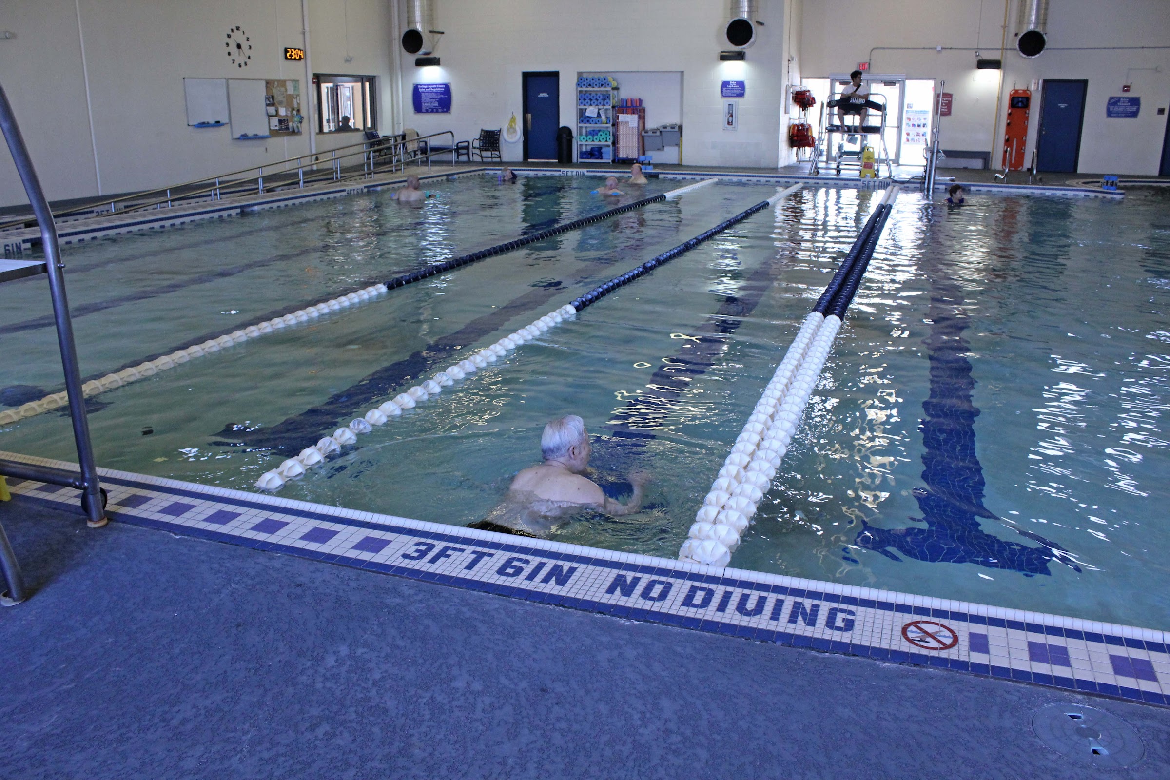The competition pool is typically maintained at a refreshing 81°F (27.2°C) for lap swimming and vigorous activities. The leisure pool is kept warmer at approximately 85°F (29.4°C) for comfortable recreational use. The warm water therapy pool is the warmest, maintained at around 92°F (33.3°C) to provide a soothing environment for therapeutic purposes.