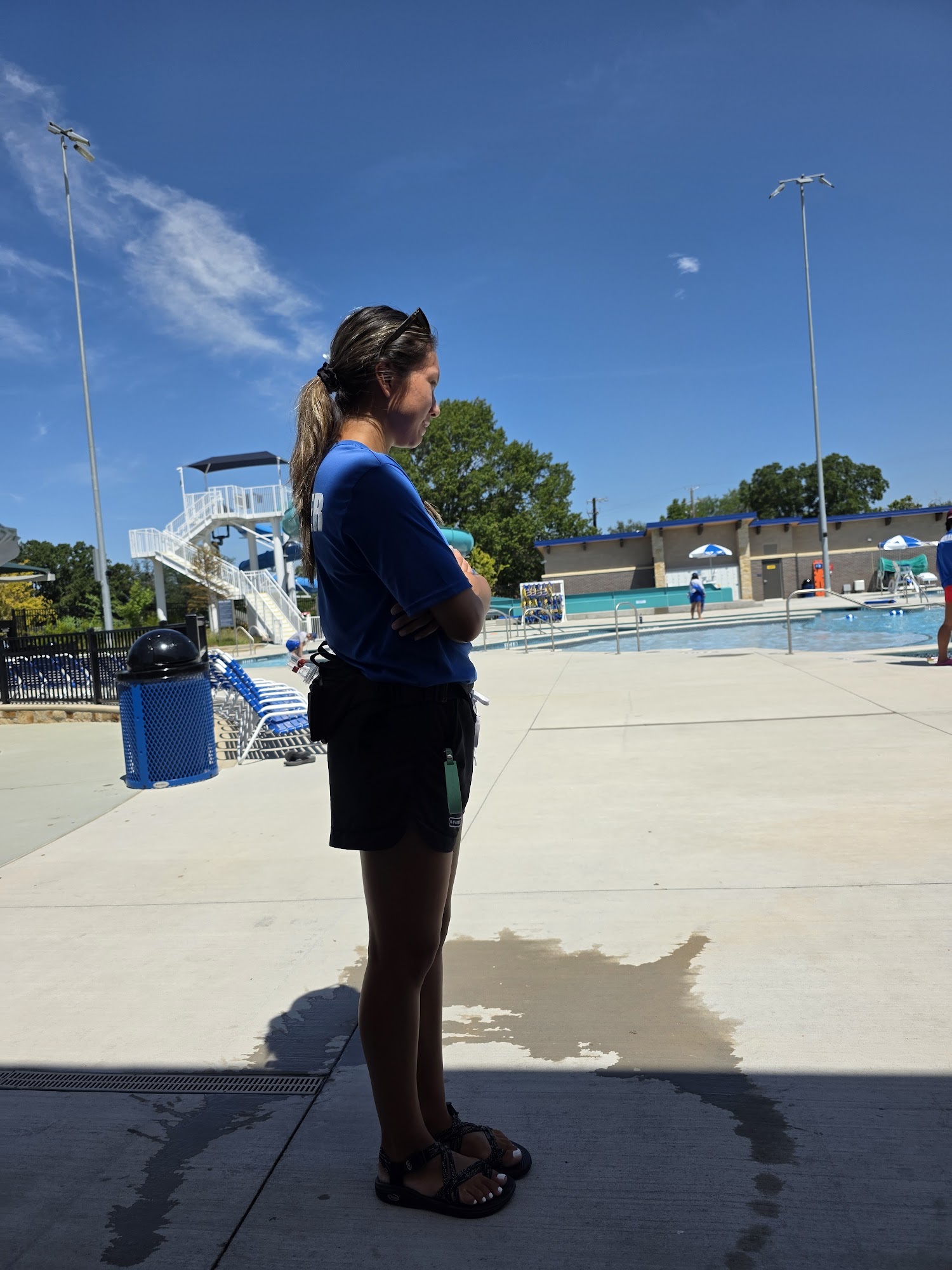 Had a good time. Lifeguards at every corner. Lane swimming is 7ft deep at one end. Could be cleaned by hand a little better. Big leaves and things floating. Temp was good and a nice variety of snacks. Bring shoes for the shower/bathroom