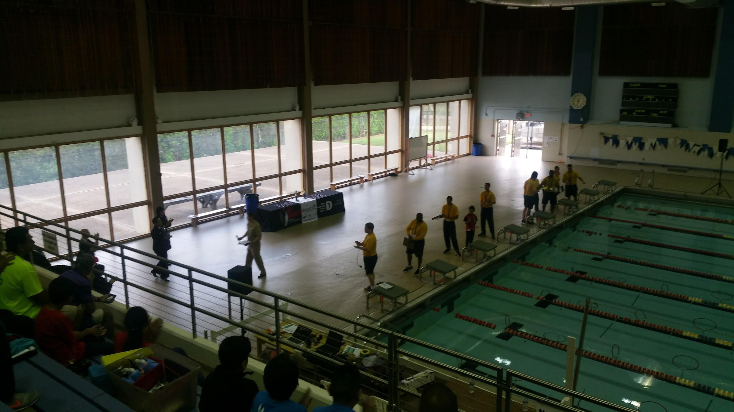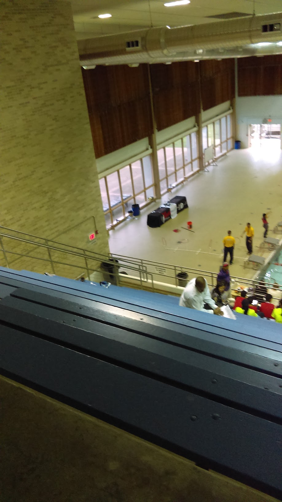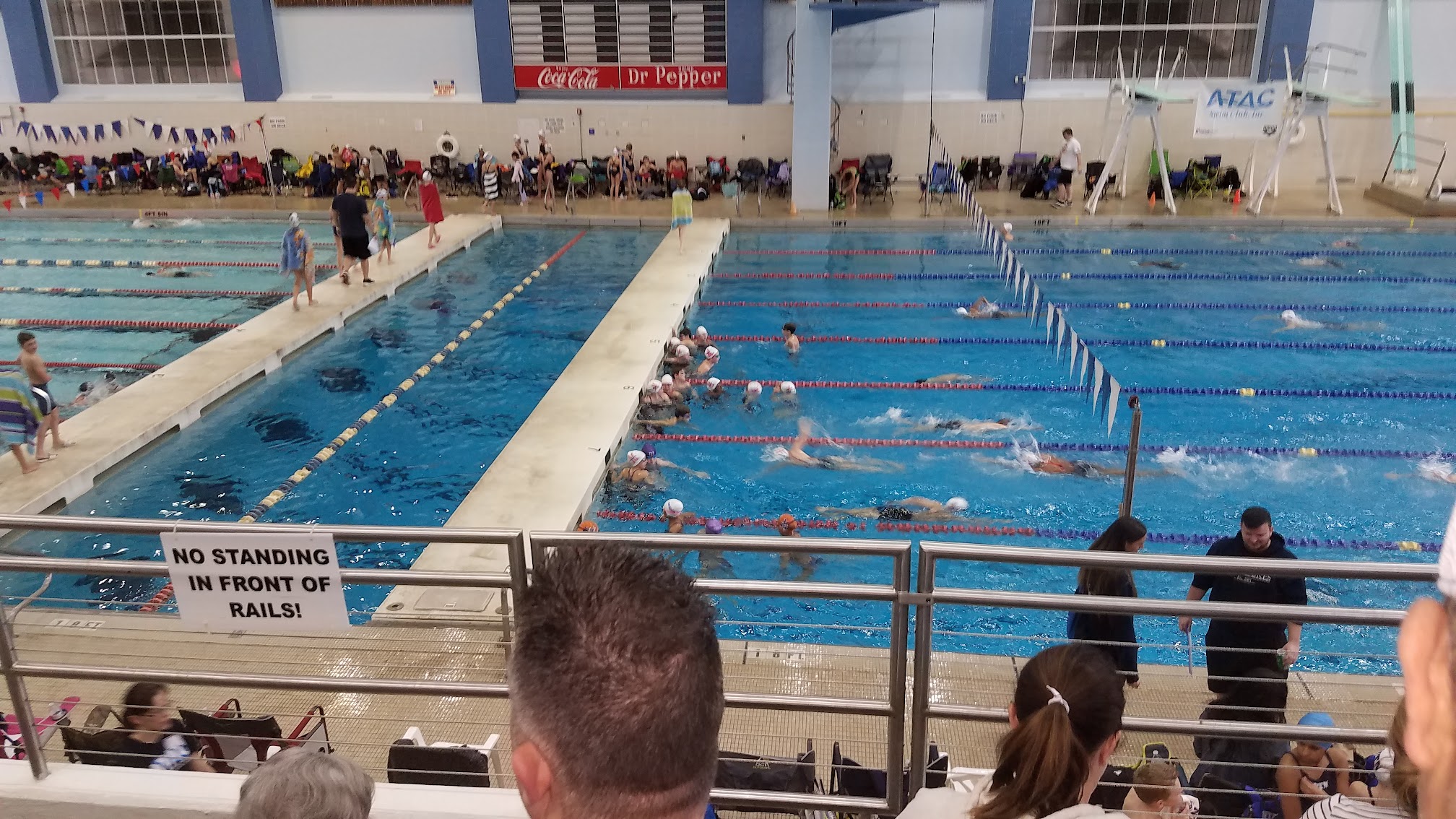Swimmers need to bring their own chairs. The swingers are not allowed to have snacks on the deck or metal water bottles The score board doesn't work so it is hard to keep track of the event and heats. They used a white board to try to help the swimmers. It is incredibly hot, more so than any other natatorium I have been to. The bleacher steps are very tall. Make sure you use a clear bag.