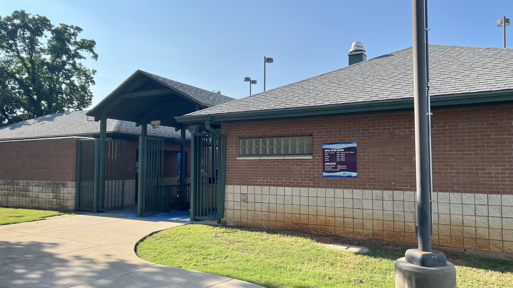 My kiddos are signed up for swim lessons at Pleasant Glade Pool. The pool itself is very clean and the instructors are so patient and kind with the kids. We have enjoyed their lessons so much! The pool itself is a little confusing to get to - you have to park behind the elementary school and there is no signage that makes that clear. As of July 2024, Google Maps takes you to the service entrance, which is not helpful to actually get to the pool as a patron. There are plenty of shaded seating areas, which I appreciate as a parent watching my littles in the pool. There’s a large pool with rafts to climb/ play on and a smaller wading pool/splash pad area that has a height limit. (I appreciate that there is a posted rule about the wading pool area being *just* for small kids to make sure it’s truly safe for babies and young children!) There have been lifeguards on duty each time we have come here. There are restrooms at the entrance and they sell drinks and frozen snacks, as well. A great little pool overall that my family really enjoys!
