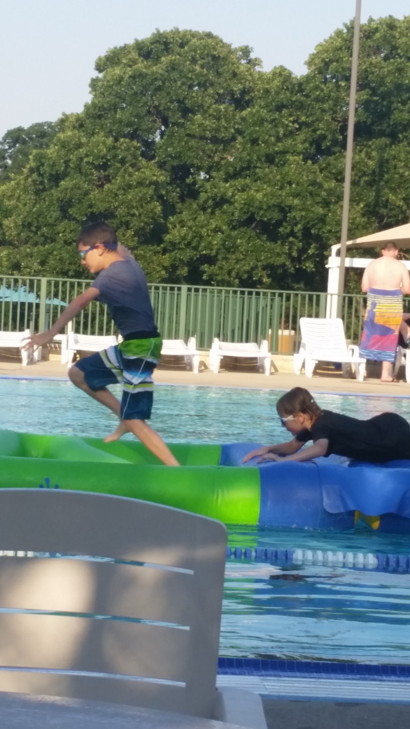 My kids loved the small/shallow area while they were learning how to swim. Now, as older kids, they still love the buckets of water that dumped out and the fact that they can touch the ground in the deepest area. The big pool and obstacle course are so much fun. Their day passes are super cheap and totally worth it. Lifeguards always seem to be paying attention and are very friendly.