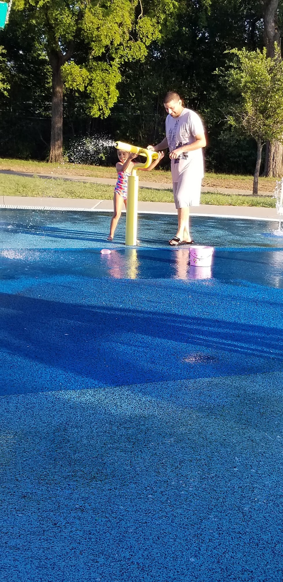 Clean, well kept splash ground. Although I did not test the water myself I could smell how strong the chlorine was. Tons of fun for free! Playground near splash ground, bike trail and more. Freindly environment, great place for yourself, couples or family and of course kids!!