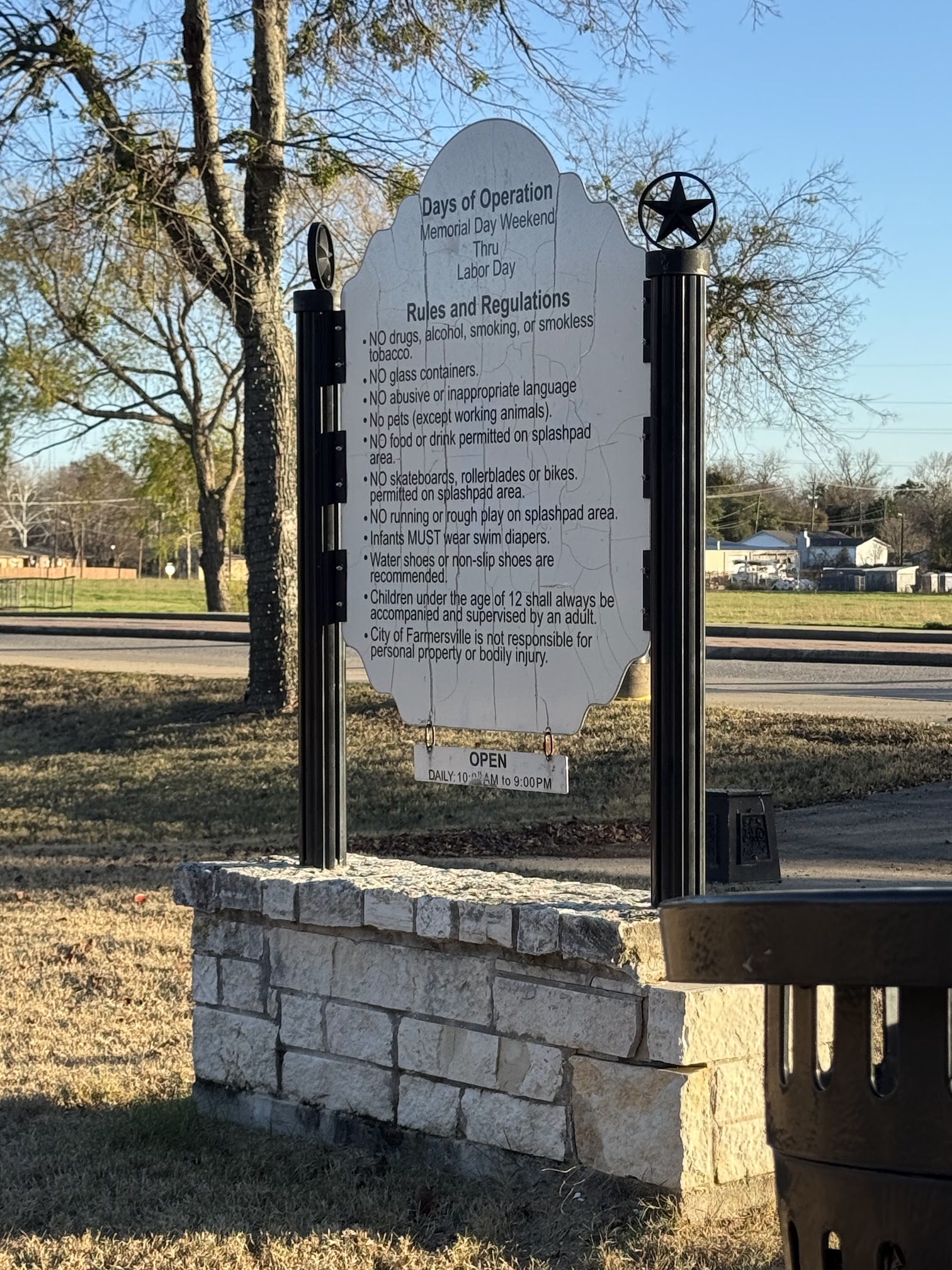 The Robbin Lamkin Memorial Splash Pad is a popular community water play area located in Farmersville, TX. It offers a free, safe, and fun environment for children and families to cool off during warm weather, featuring various sprayers, fountains, and interactive water elements designed for enjoyment and active play.