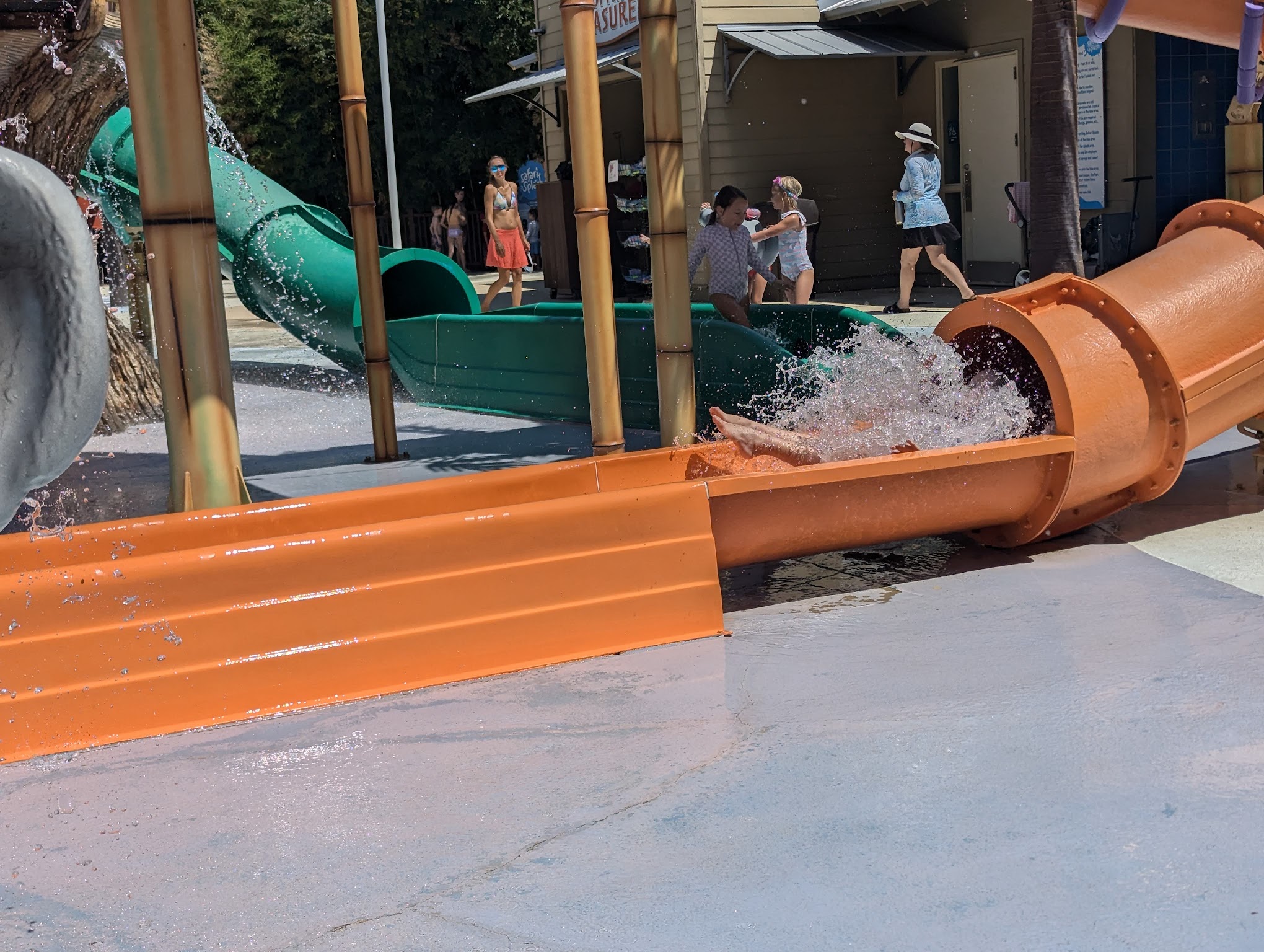 We were there yesterday, first time to the Safari Splash, not first time to the zoo or a splash pad. Our son is 21 months and in my opinion too young for this venue. There are small slides for toddlers but the proximity to the large slides means a lot of bumping and pushing of little kids. I also wish there were lockers for belongings. I was in the spray zone with my toddler so keeping my diaper bag and personal belongings on me weren't an option. The big slides looked fun, but the monitoring was not done. On the red slide, a kid was climbing up it and actively ignoring the employee who was telling him to get down. I personally witnessed 3 kids get hit/injured on the blue side as a kid was climbing up, but since it was a tunnel slide the attendant at the top couldn't see. Several parents were yelling up at her and it took a couple of kids before she heard. I reccomend some kind of loud speaker to call out descriptions of the child so the adult they came with can come grab them and leave if it's a continuous issue. We won't be back until he's a bit older and can fend for himself a bit more. Personally I'd reccomend ages 5 and up for this place. All and all he did have a good time, minus the getting hit, pushed a few times