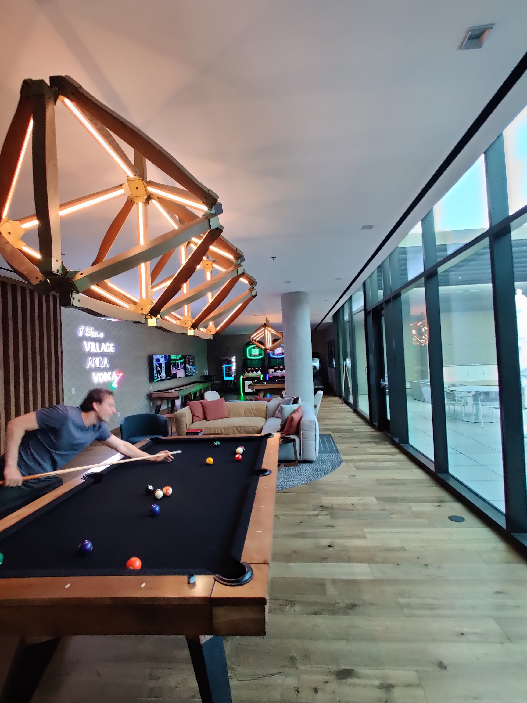 This place has gotten insanely busy. It's fun with lots of positive energy . I think drinks are around $8 for a can of alcohol . And shots and other things I think are around 17 or 14 dollars . They need to put the stuff in the pool that turns blue when you go pee pee . That would be some awesome entertainment!