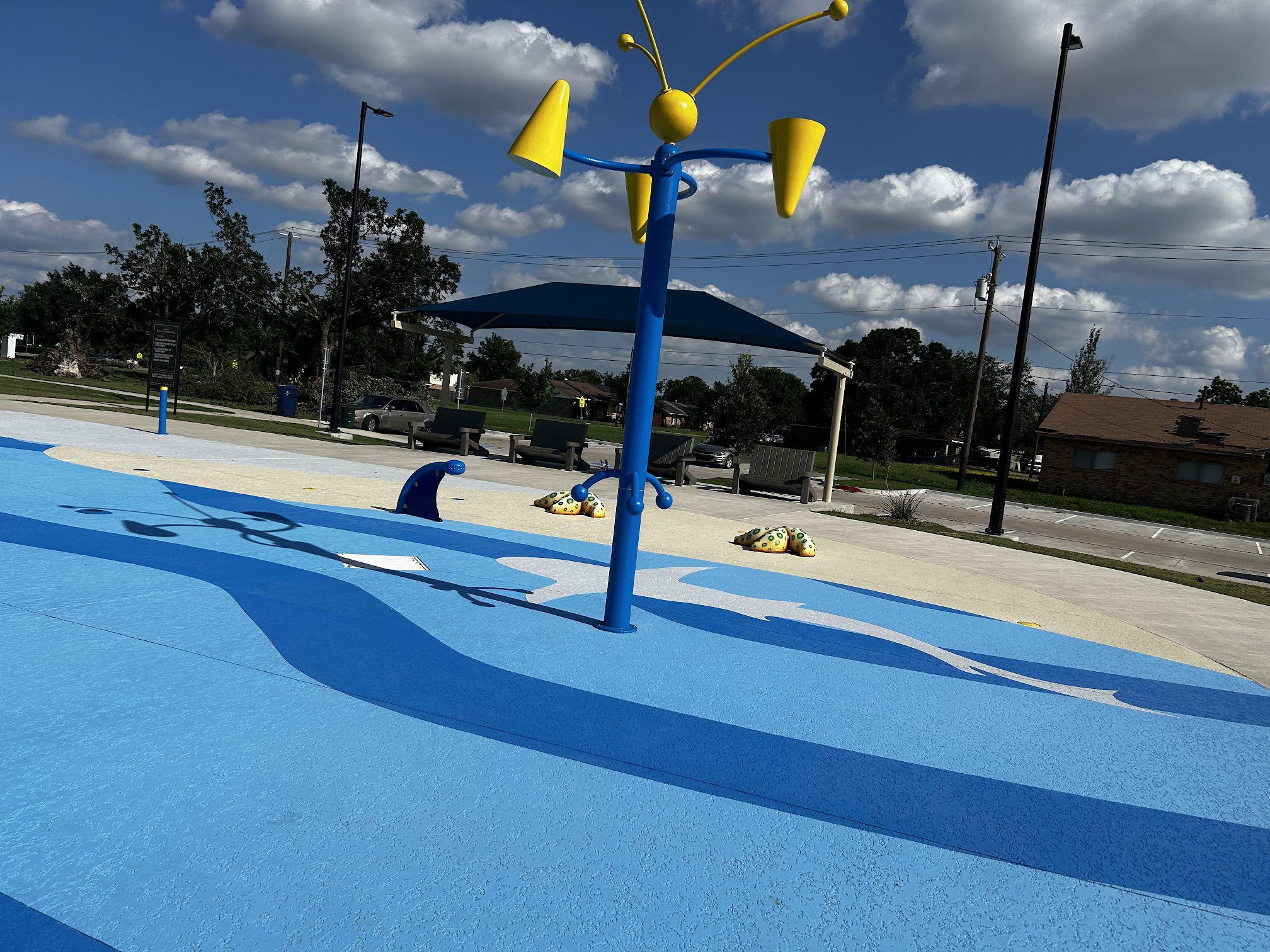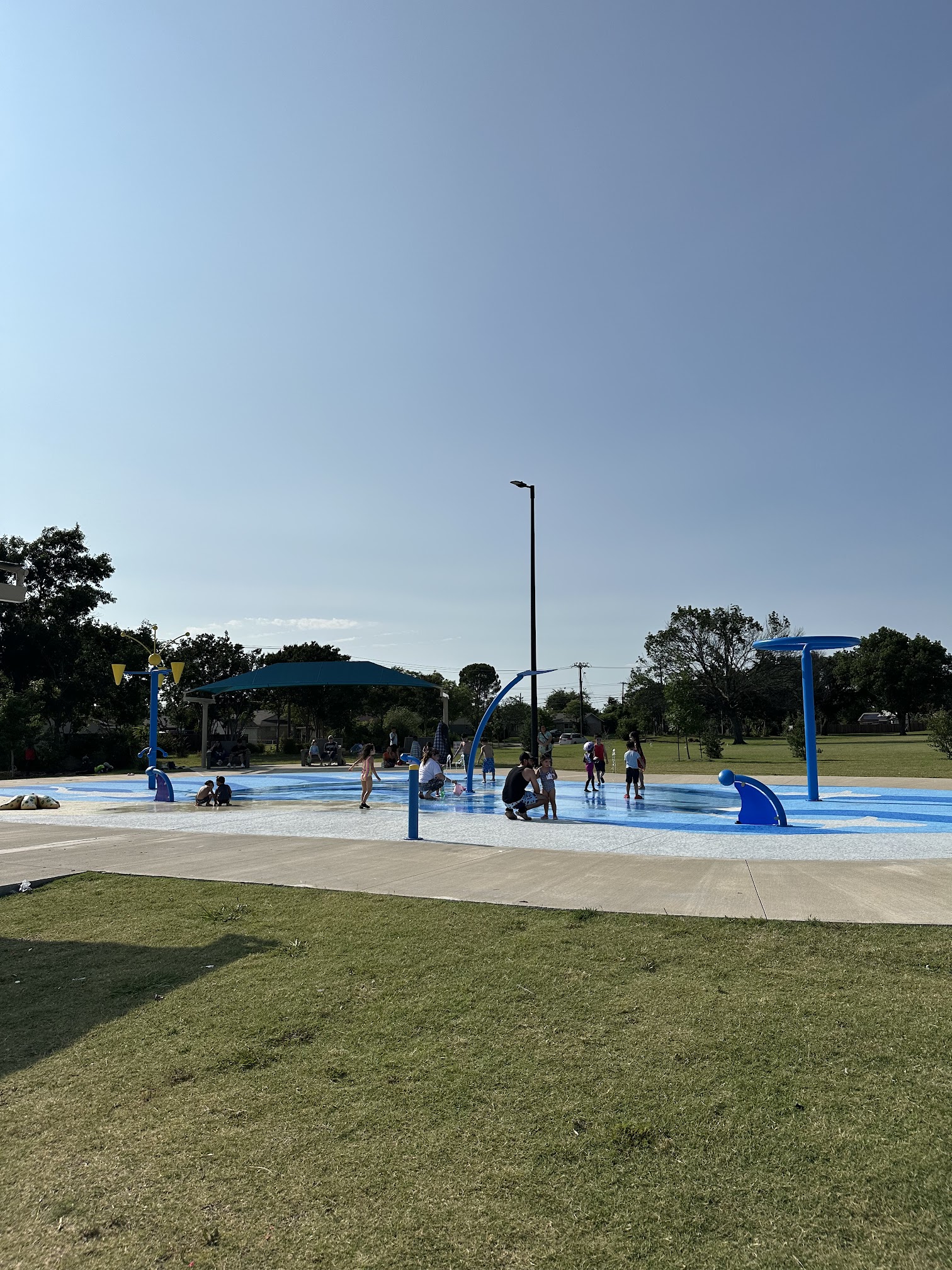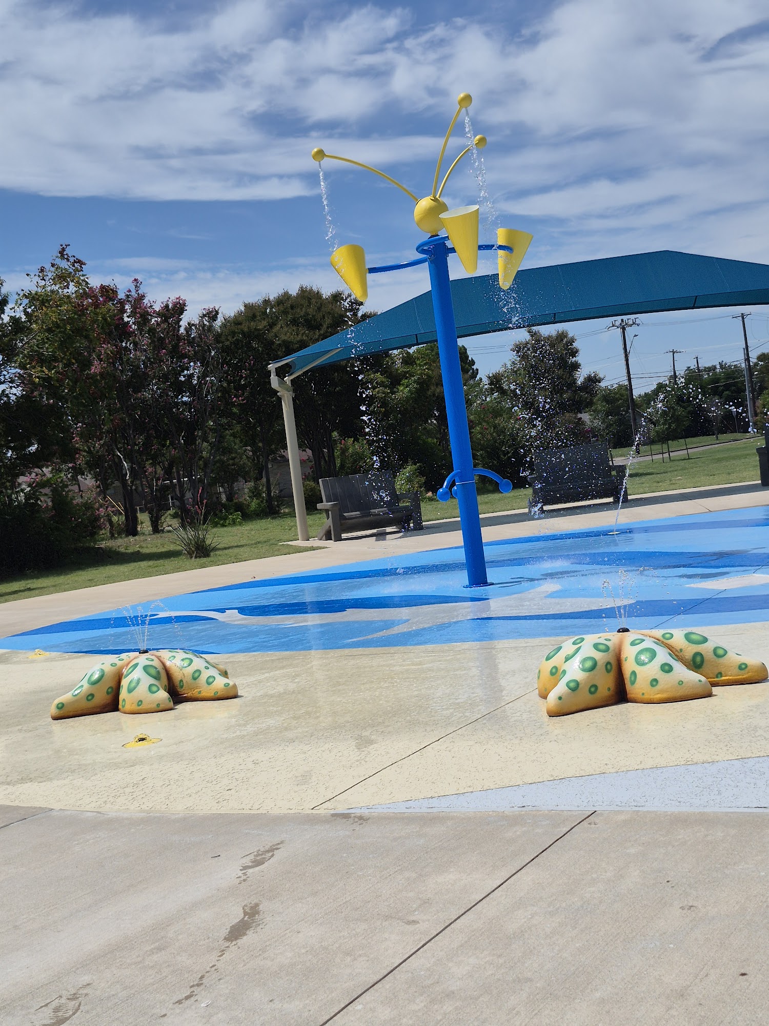 Great little splash pad, wish the community took better care of it. It's only been open a few weeks and already has so much trash every time I go. Maybe if a trash can was closer to the seating area, that would help. But at the same time be respectful and pick up your kids trash. Signs saying no balloons but parents keep bringing them.