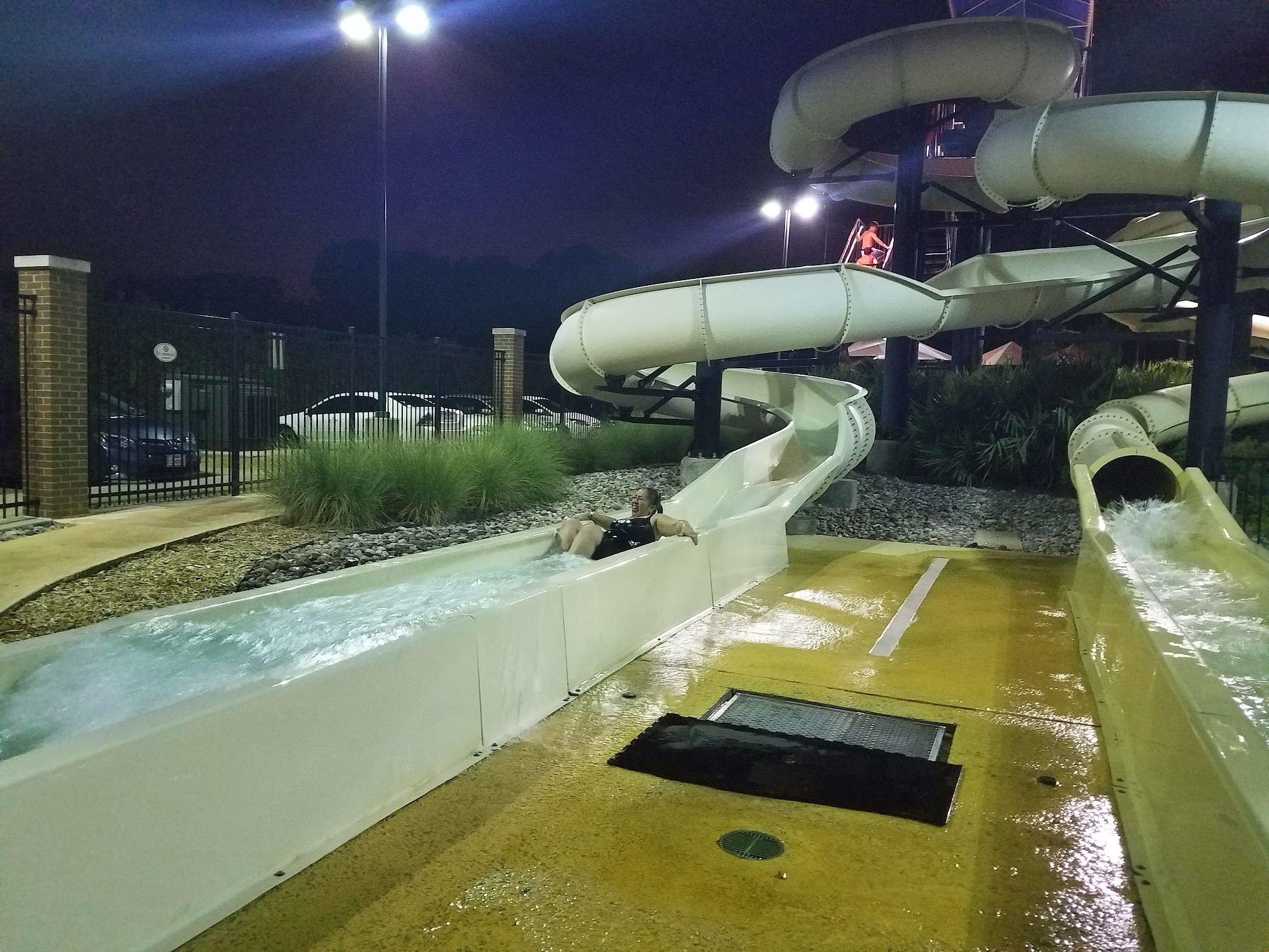 Very fun for the kiddos. Many lifeguards on duty watching simultaneously therefore having a great time! Puts your mind at ease...There are many different areas of swimming entertainment including two slightly different tall fast water slides with lifeguards at the top and bottom of the slides. There are plenty of low sitting chairs to sit in and covered so you don't get burned to a crisp.