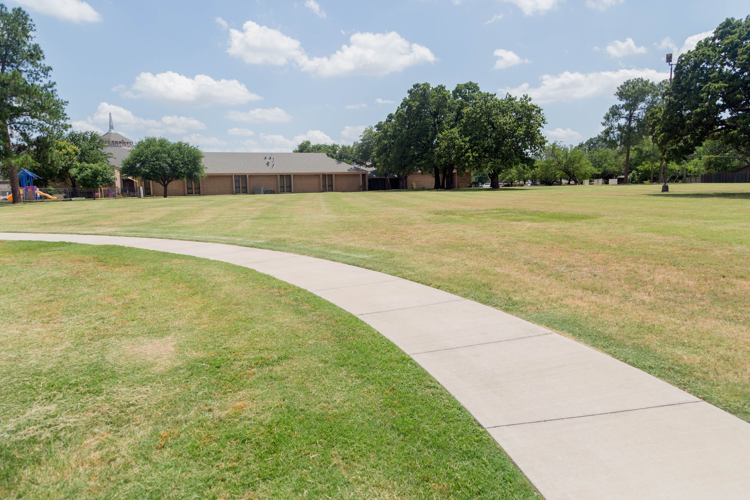 This isn't the park to go to if you're expecting walking trails. There is a path to the tennis court and playground. The neighborhood is nice to walk through.