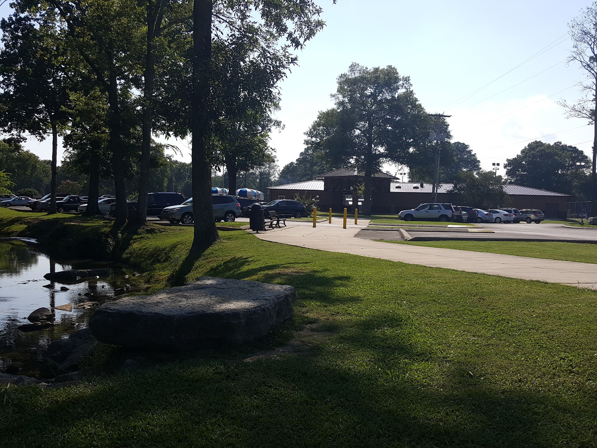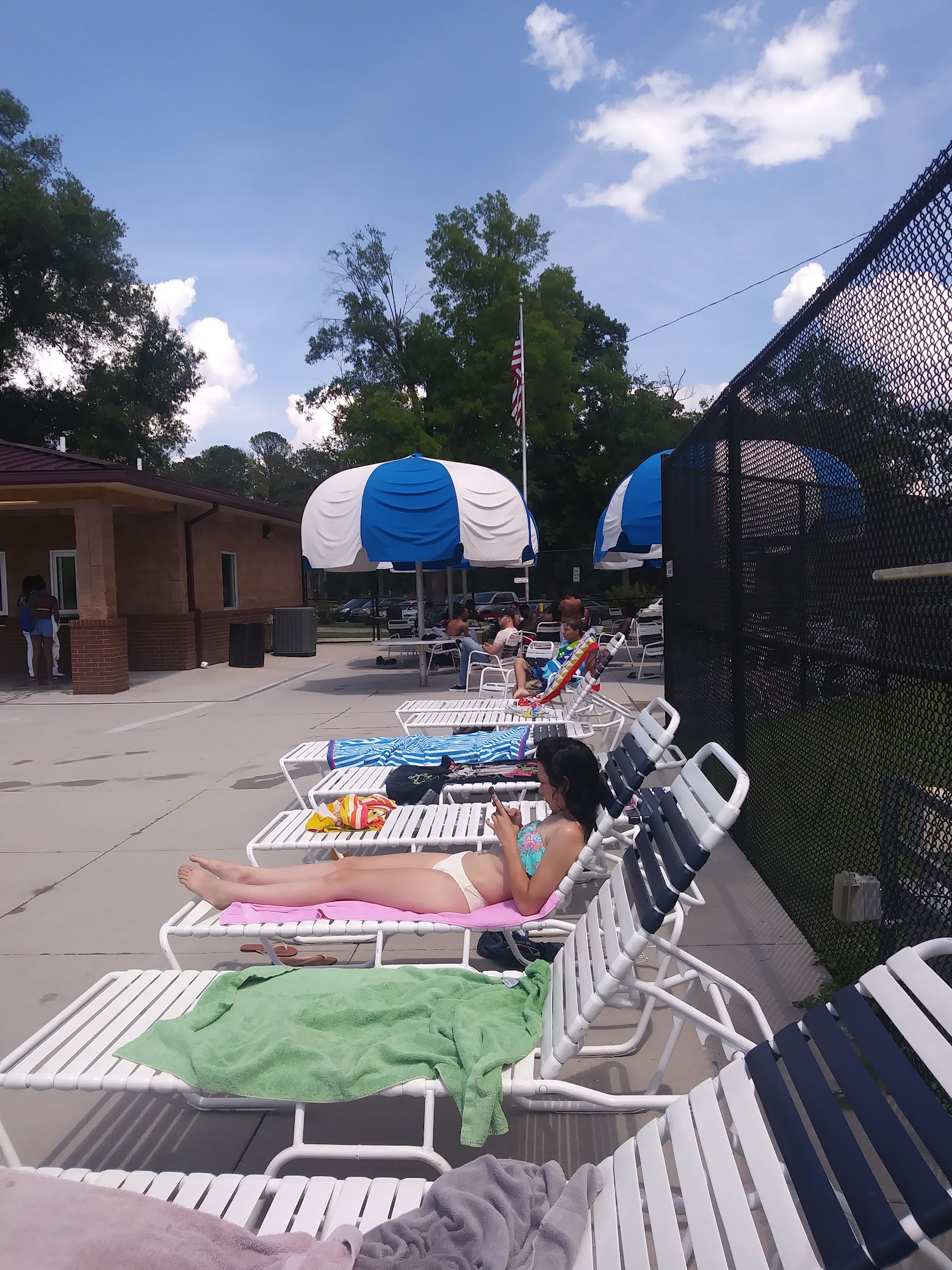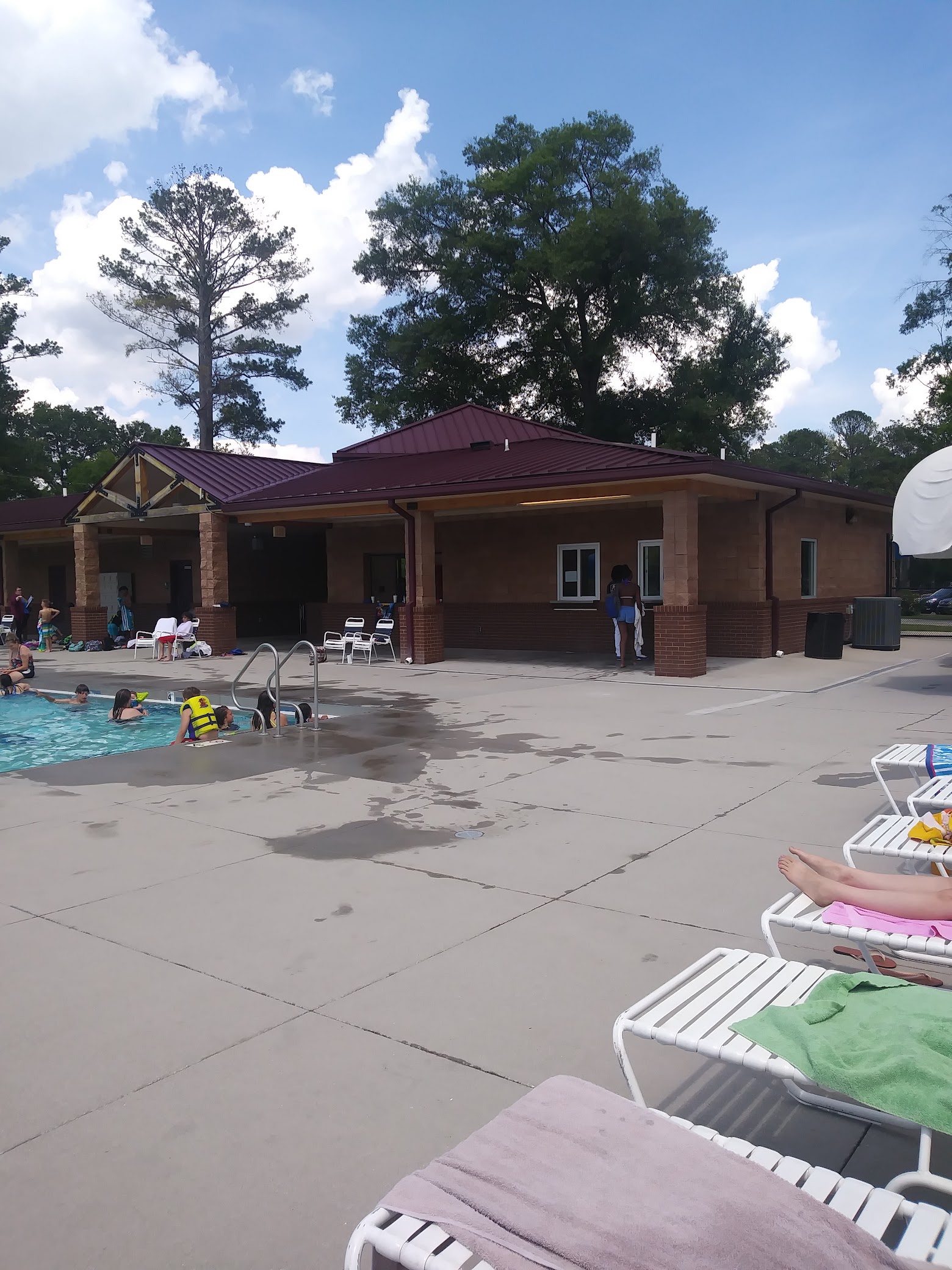 Public pool with a toddler area, concessions, and a playground, plus sports fields.