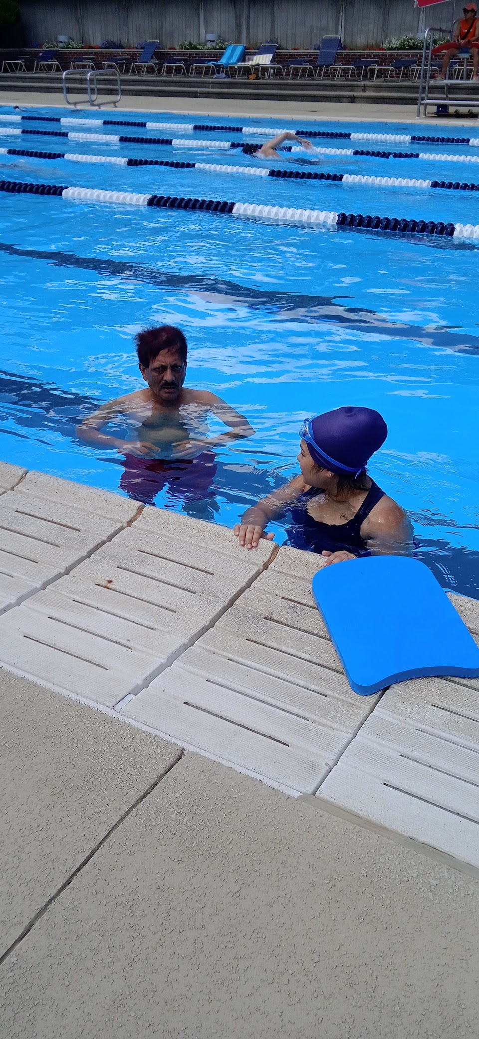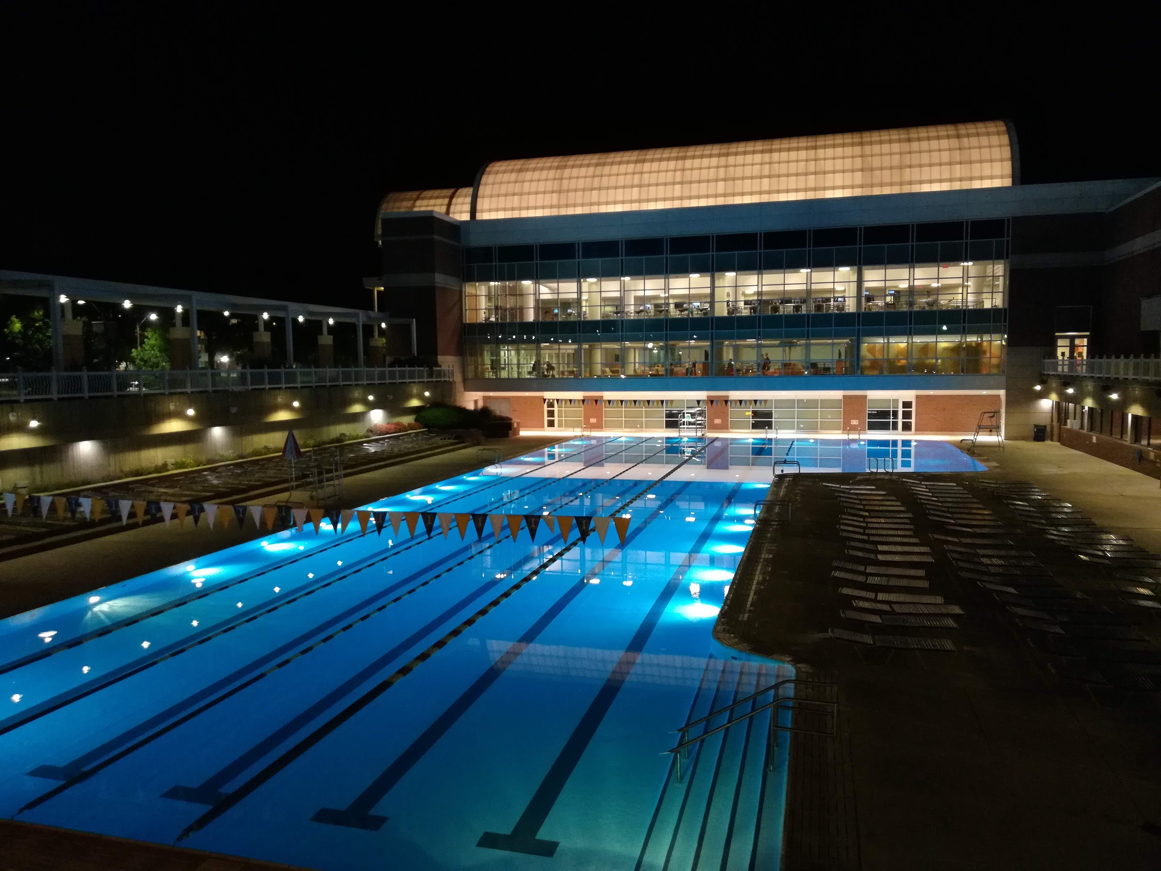 The pool is very nice and a good temperature for lap swimming, but it's odd that there is a deep part in the middle. It is clean on the pool deck and the locker rooms are well cleaned.
