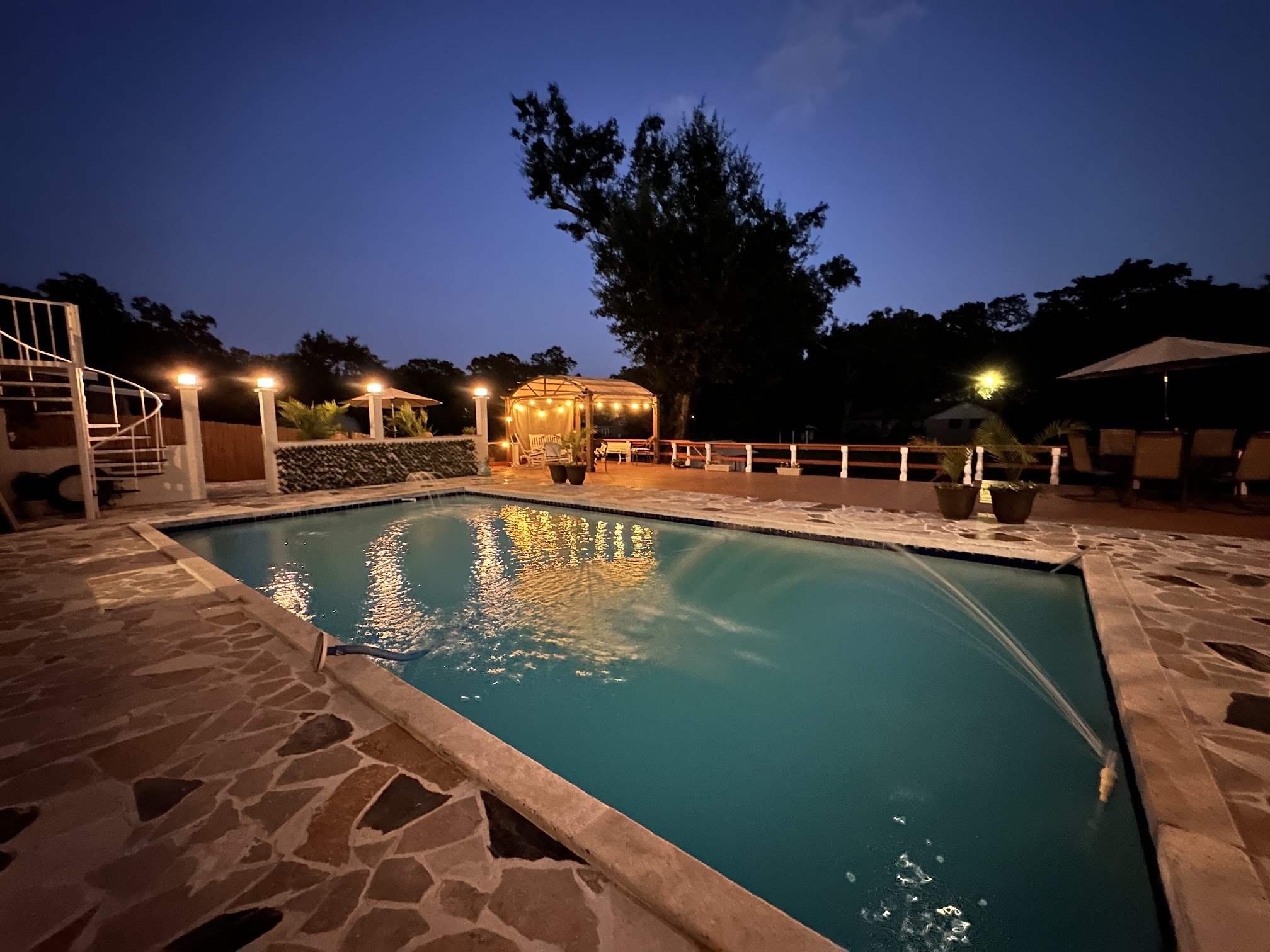 The main pool at Royal Palms Paradise is generally heated year-round to a comfortable 85°F, while the accompanying hot tub is maintained at a soothing temperature of 102-104°F for guests' ultimate relaxation.