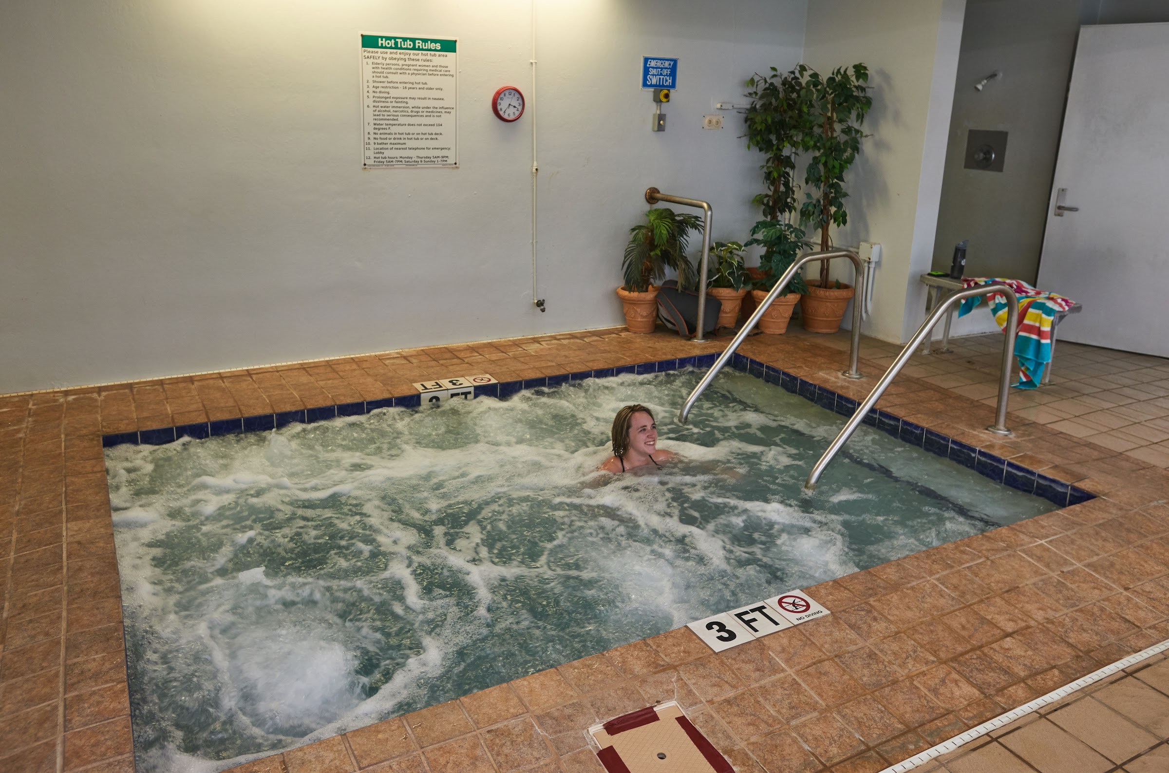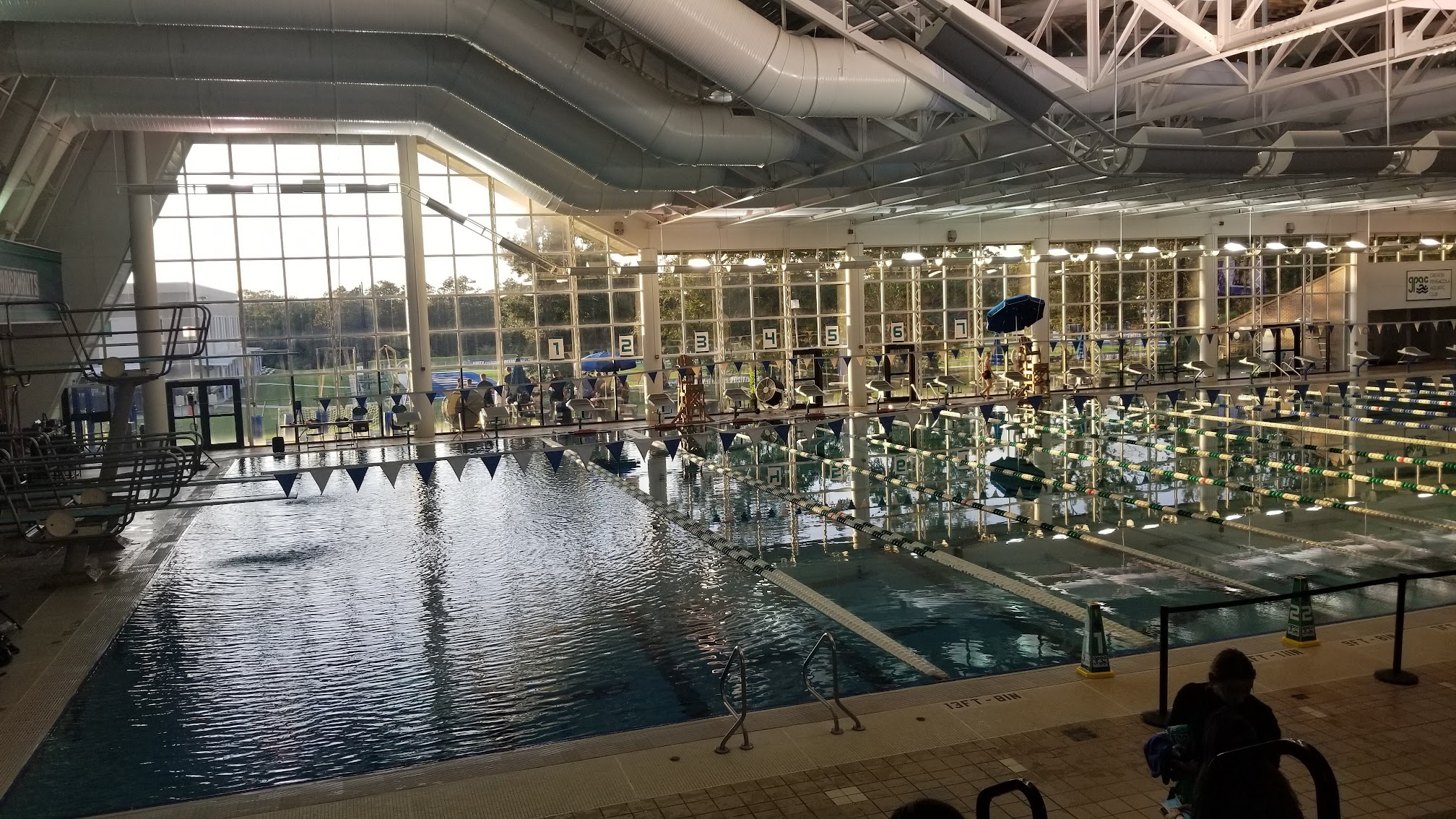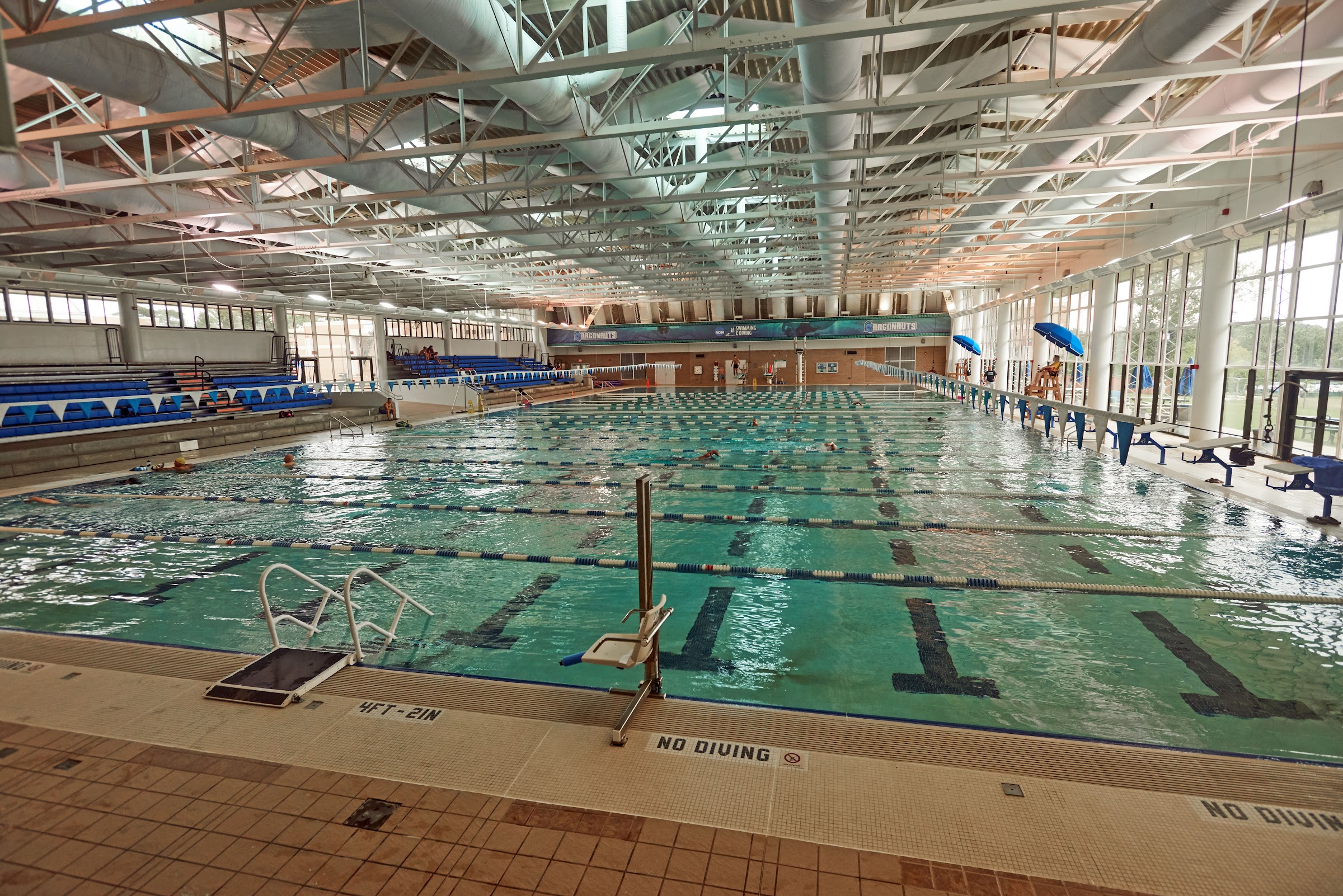 Nice pool. Lots of lanes, a hot tub for Only 4 dollars for guests. Make sure to get a parking pass at the visitors center before parking. They will ticket you if you do not have one.