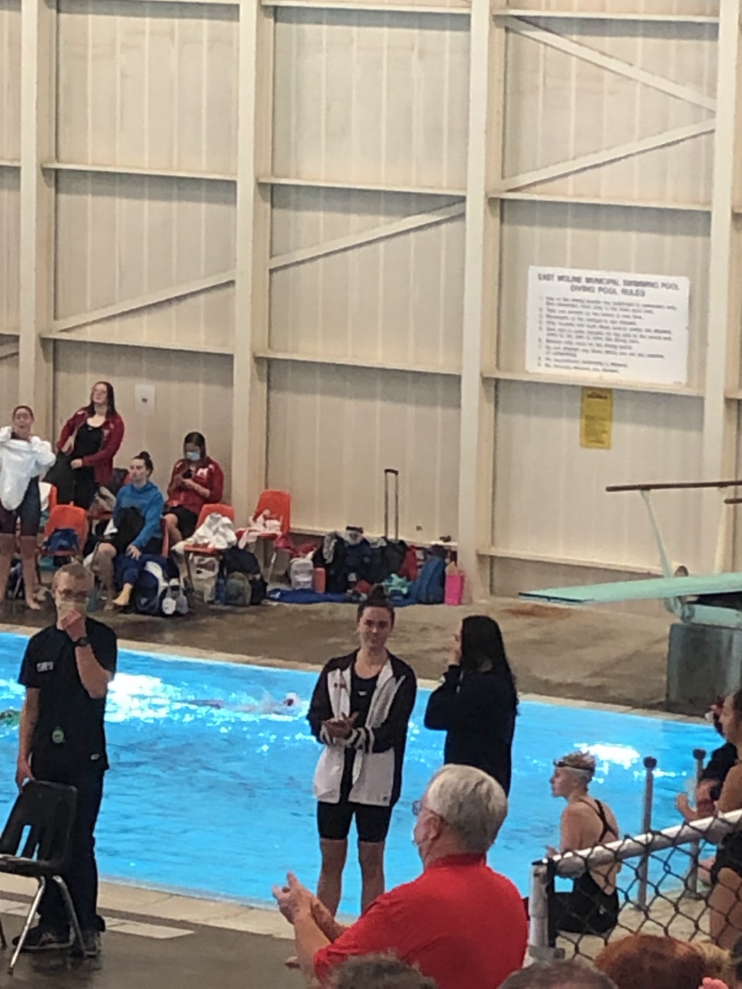 It's nice during a swim meet. You can bring your own chairs and blankets to place around the pool for your family. The concession stand has good options to eat and drink. There is nice air flow during meets so you don't get to hot as long as your wear a t-shirt. They have a lifeguard on duty for the deep pool and everything runs smoothly.