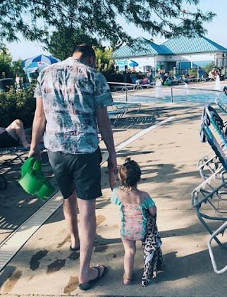 Miamisburg pool has much to offer for swimmers and splashers of all ages. There are lawn chairs around the perimeter of the pool, but they usually are filled quickly, so many people spread out their beach towels on the grassy hill(s). Head to consessions to fill up on Domino's pizza by the slice, pretzels, nachos with cheese, starbucks iced frappuccino, smoothies, or other assorted snacks. This past summer saw the addition of a splash pad, which was a huge hit with my toddler! There is a frog slide for little swimmers and two bigger slides for the bigger kids/teens/adults. Other features include a diving board and a rock climbing wall. Don't forget Sunday is residents only!