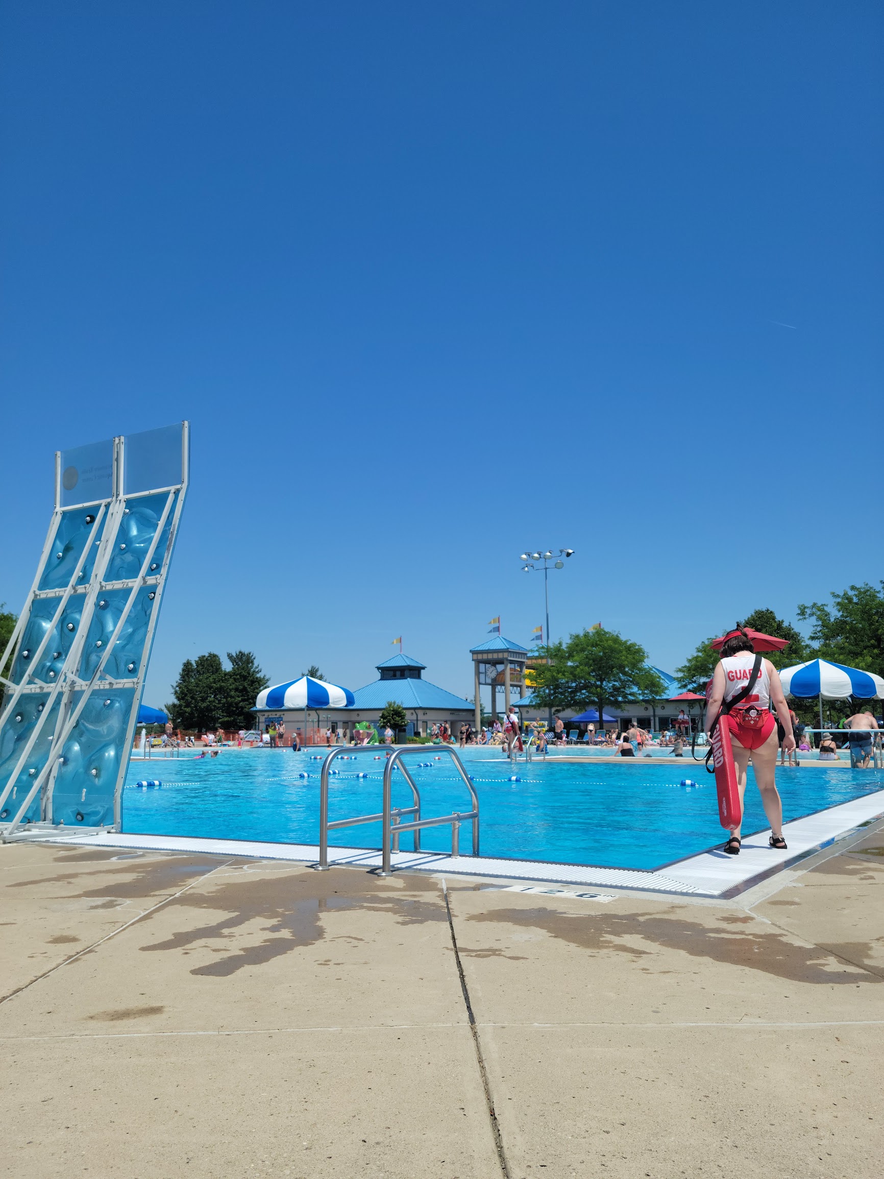 What are people saying (AI review summary)? The Miamisburg pool is generally considered an excellent community facility, particularly for families and children, offering a variety of attractions including slides (for all ages), a diving board, and a rock climbing wall. A recently added splash pad has been a huge hit with toddlers, though its construction phase was noted as an eyesore. Swimming lessons, such as the 'guppy program,' are highly praised. Visitors are welcome to bring their own chairs or blankets as pool-provided seating fills quickly, and it can get crowded on weekends and hot days. However, the food at concessions receives consistent criticism for being horrible, overpriced, and poor quality (e.g., dry pizza, hard pretzels, overly sweet slushies), indicating a need for significant upgrades and price adjustments. Staff reviews are mixed, with some members described as rude while others are accommodating. Minor complaints include a rough pool floor, and it's noted that Sundays are reserved for residents only.