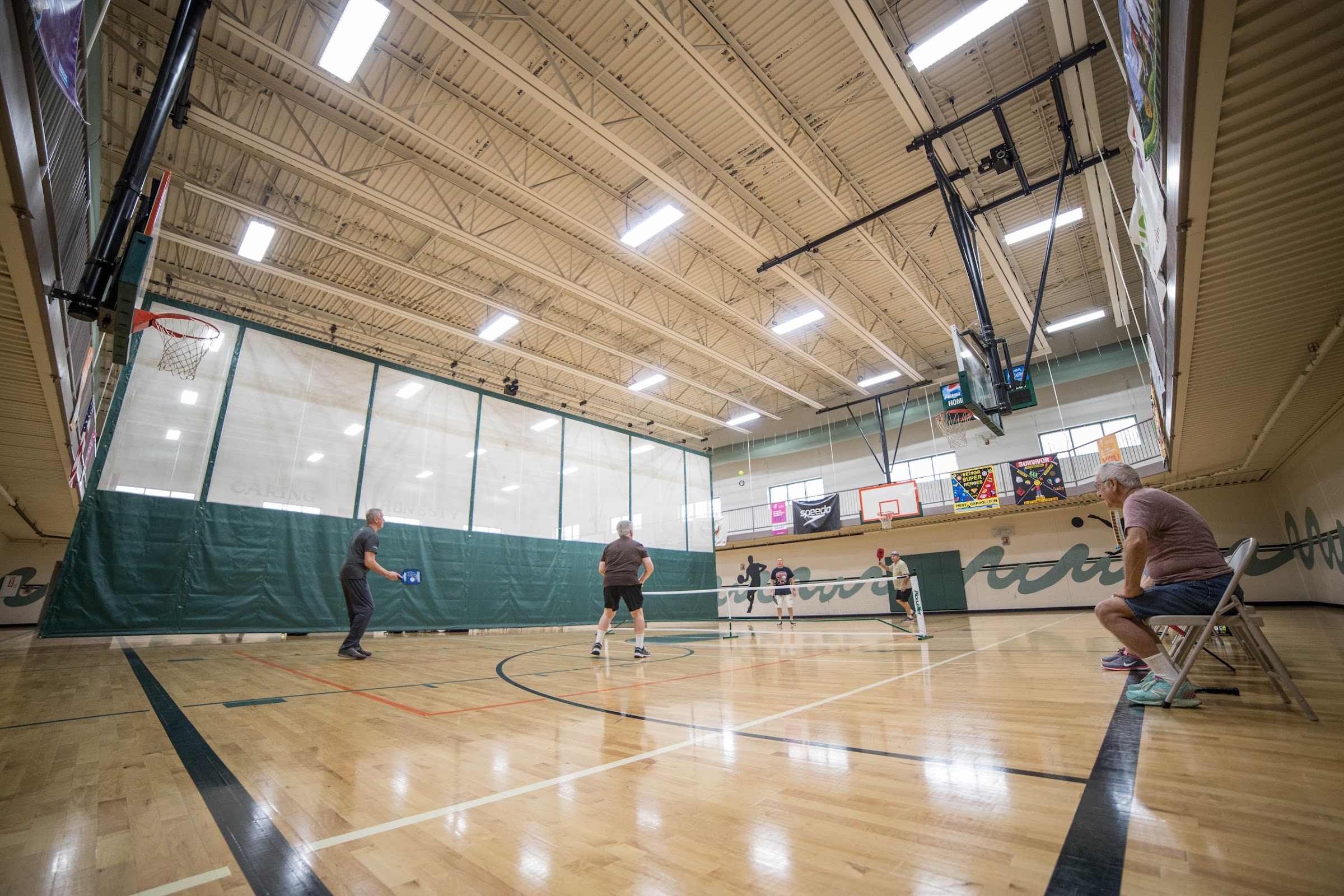 Family-friendly fitness center with 2 indoor pools, a basketball court and an indoor track, plus a teen center.