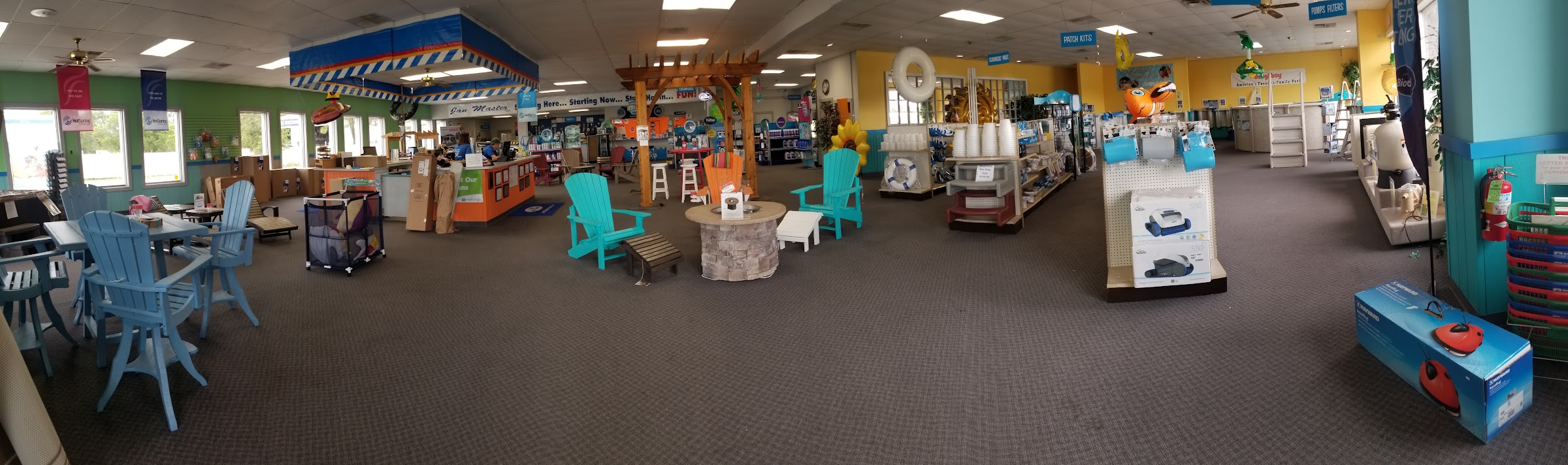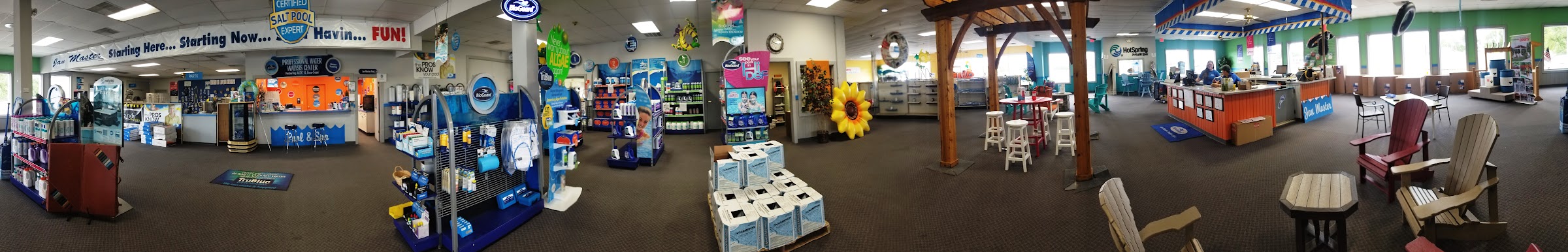 Supply store stocking aboveground pools, plus hot tubs and equipment.