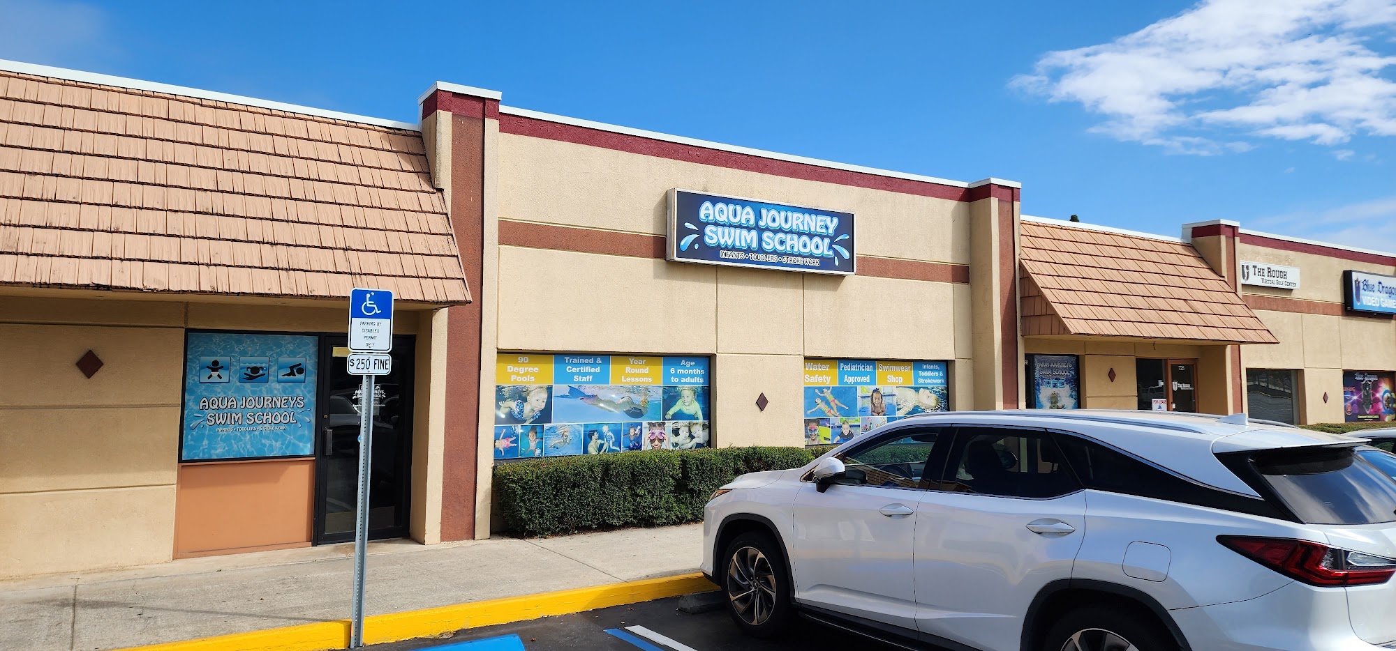 Aqua Journeys Swim School, located at 721 S Nova Rd, Ormond Beach, FL, offers year-round swim lessons for all ages, from infants to adults. They focus on water safety, survival skills, and stroke development in a positive and encouraging environment, catering to various skill levels.