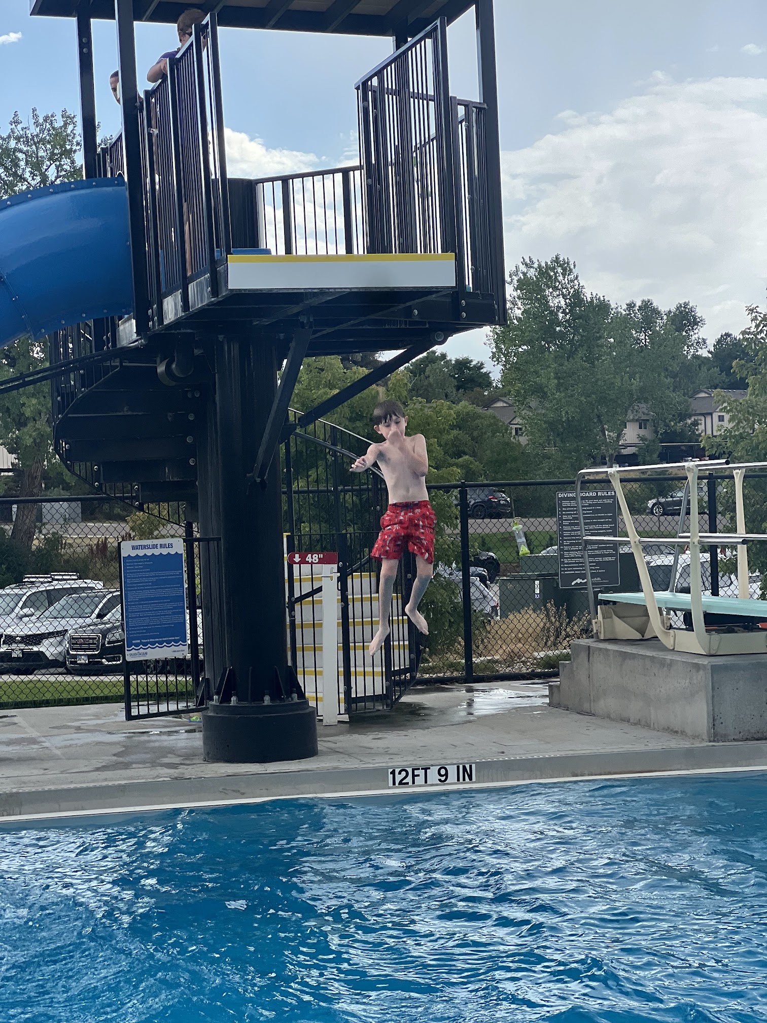 Great place to swim with the family! There is a diving board, a slide and a high platform to jump off.
