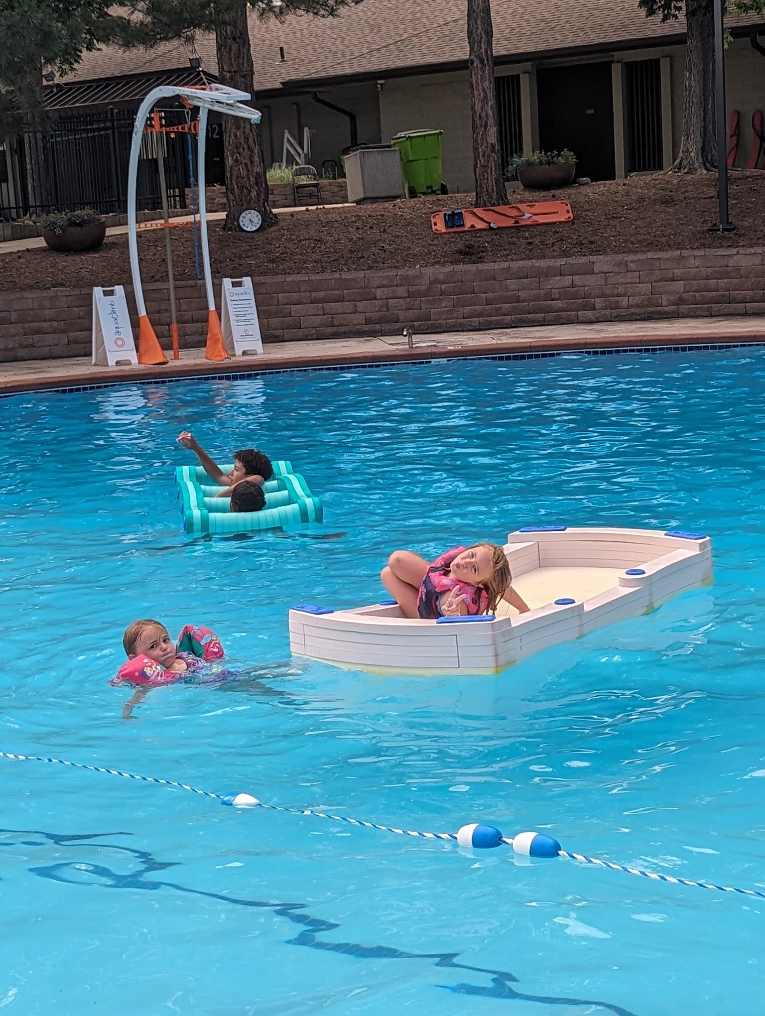 This is such a great atmosphere for a neighborhood pool. The water is warm, and they always have awesome music playing. The pool manager, Amanda, is there every summer and does a fantastic job making sure the pool is clean and guests are happy. She has such a great attitude and manages the pool area very well. The ladies up front always give me and other guests a warm welcome as soon as you walk in. Overall this is a great pool to bring friends and family too, I highly recommend. Edited: I love the new boats available. The kids seem to have a blast using them. Such a happy fun environment for the summer.