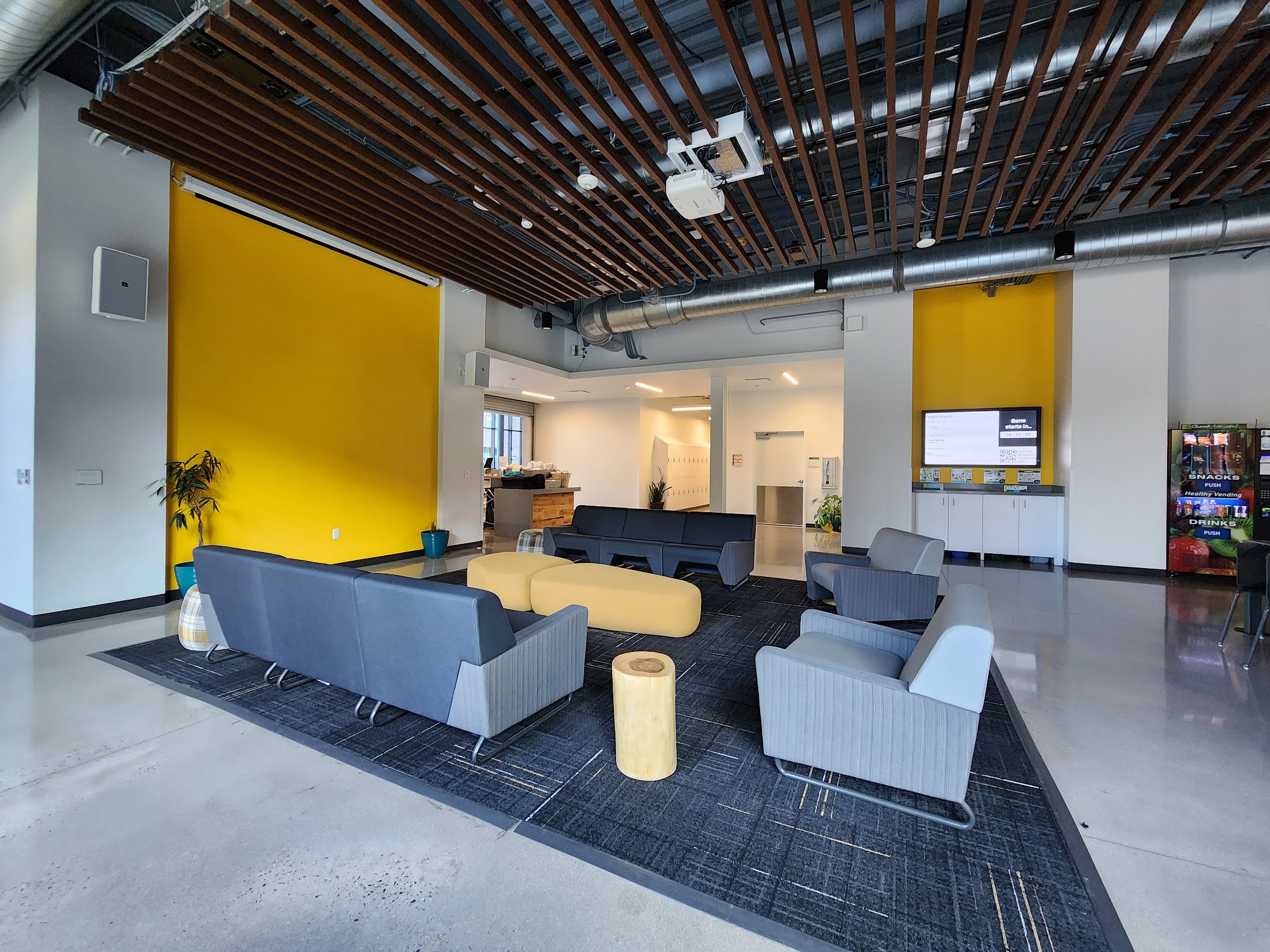 Recreation center with a climbing wall, basketball courts, swimming pool, and a variety of workout areas.