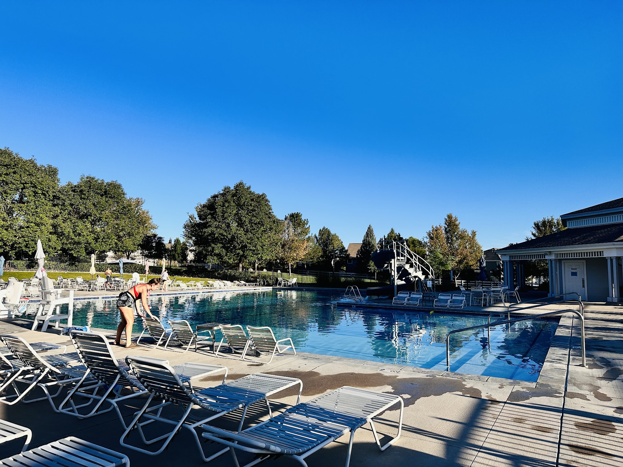 My son and his family live in Greenfield, and I've been to the pool/clubhouse several times. It's beautiful! Always clean, always plenty of chairs, and the kids have a great time. A lifeguard is ALWAYS there, and it feels safe and organized. It's fun to be there!