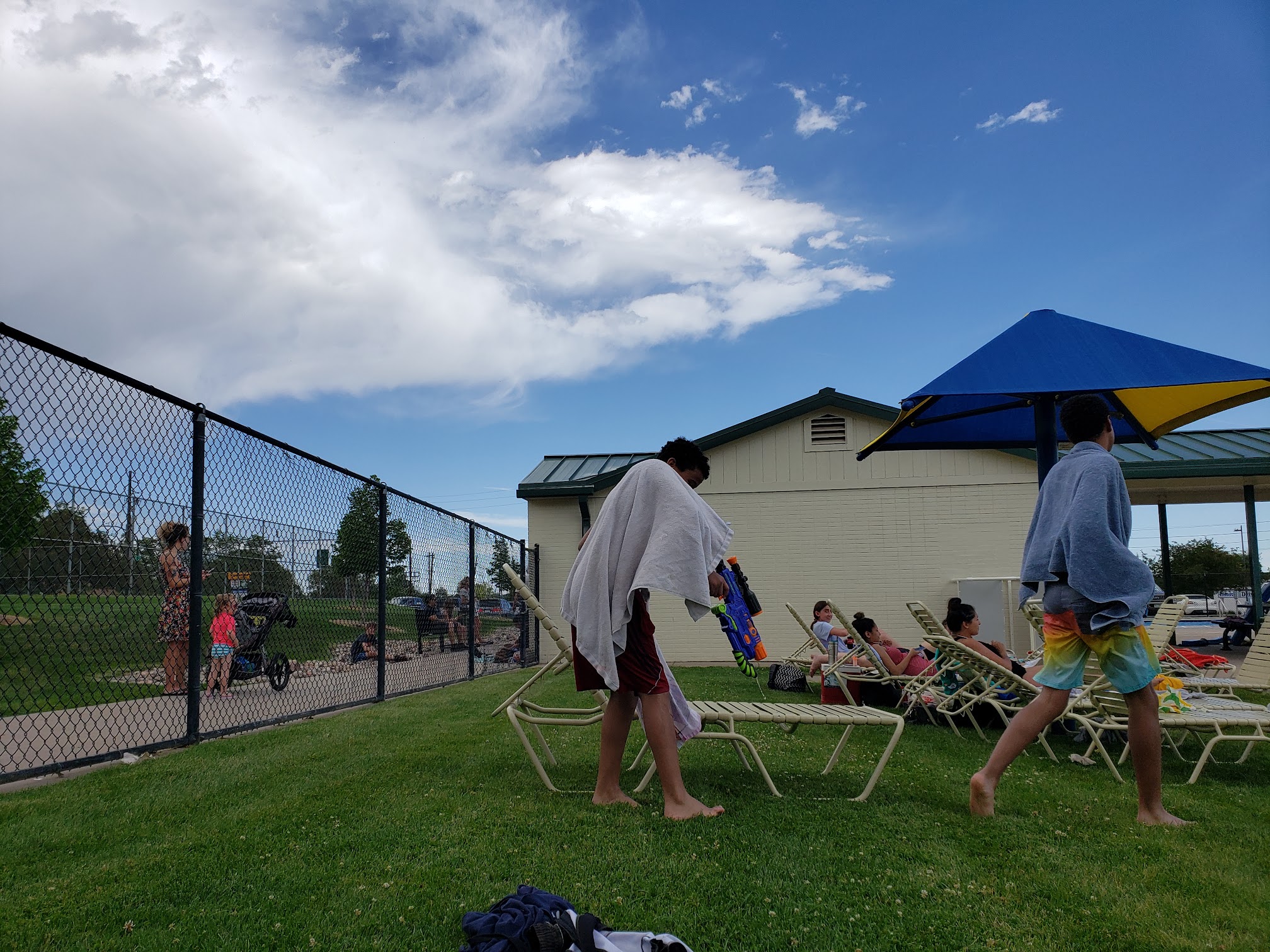 Tennis courts and pool were remodeled a bit ago. Decent size parking area. Pool seems great for kids. Tennis courts are nice and pretty busy on warm days. There's a playground area as well as grass fields. Near busy streets so you get road noise, but still nice place to enjoy the outdoors.