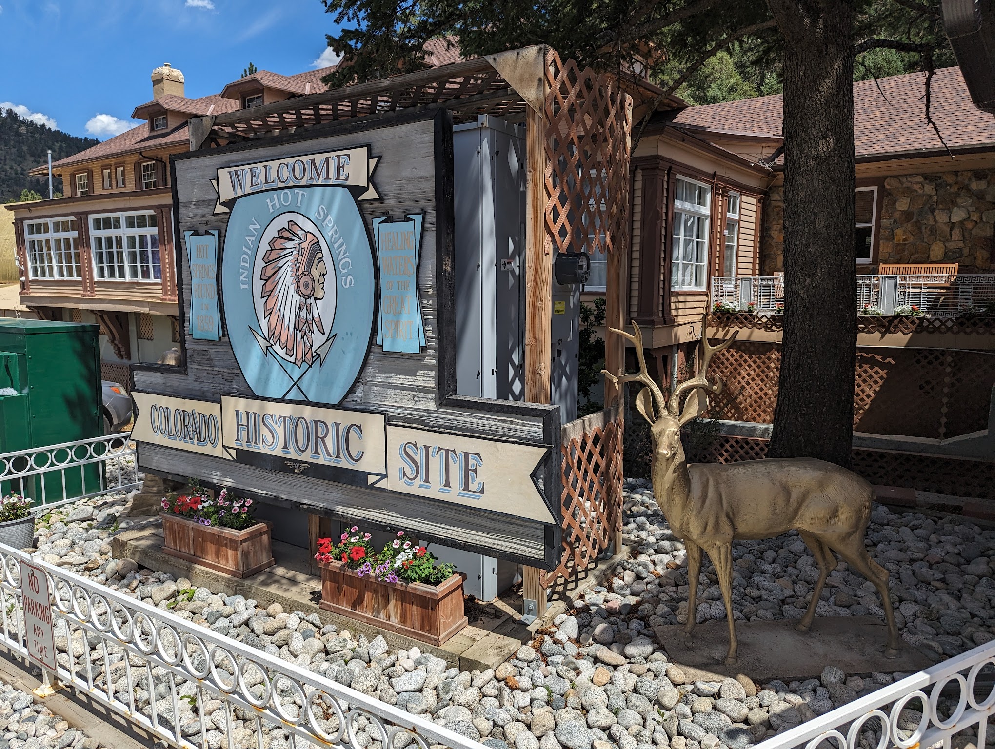 Indian Hot Springs, located at 302 Soda Creek Rd, Idaho Springs, CO, is a historic and unique hot springs resort known for its naturally odorless, geothermally heated mineral waters. It offers a variety of bathing experiences, including subterranean cave pools, a large outdoor mineral water pool, and private jacuzzis, providing a relaxing and therapeutic retreat in the Rocky Mountains.