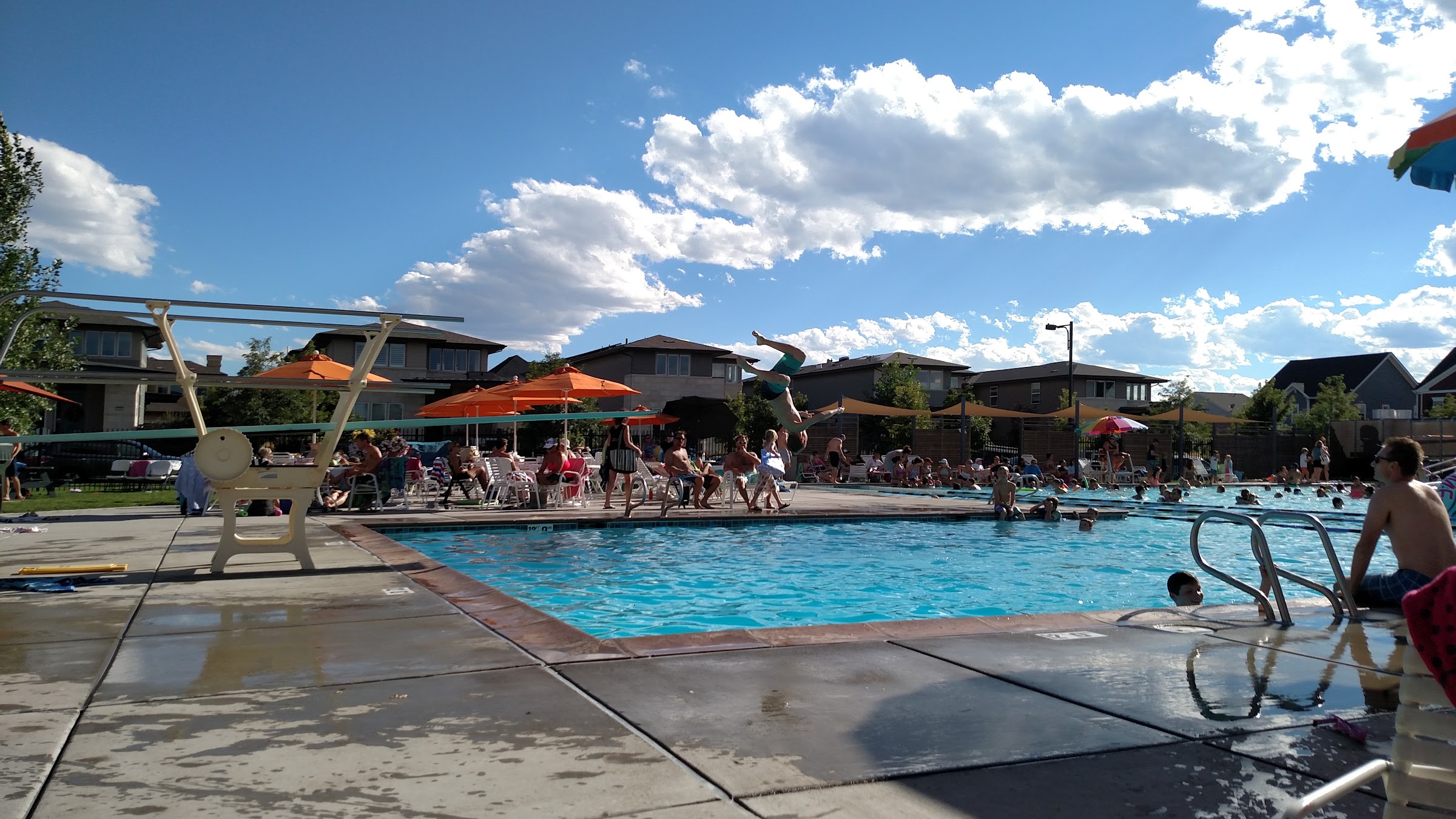 What are people saying (AI review summary)? The Jet Stream Pool is a popular, often busy, neighborhood facility, especially noted for being clean, well-monitored, and offering ample space with tables and chairs. Key features include a diving board (a rare amenity among local pools), a deep end, lap lanes, and a zero-entry shallow end, which is great for younger children. Visitors appreciate the allowance of outside food and beverages, the availability of on-site food and drinks, and the convenience of bathrooms with showers and a nearby playground. However, some concerns were raised regarding children not following rules and lifeguards not consistently enforcing them. While the zero-entry caters to little ones, some reviewers suggest it's best for children aged 4 and up, as the pool deepens quickly with limited shallow play areas beyond the entry stairs.