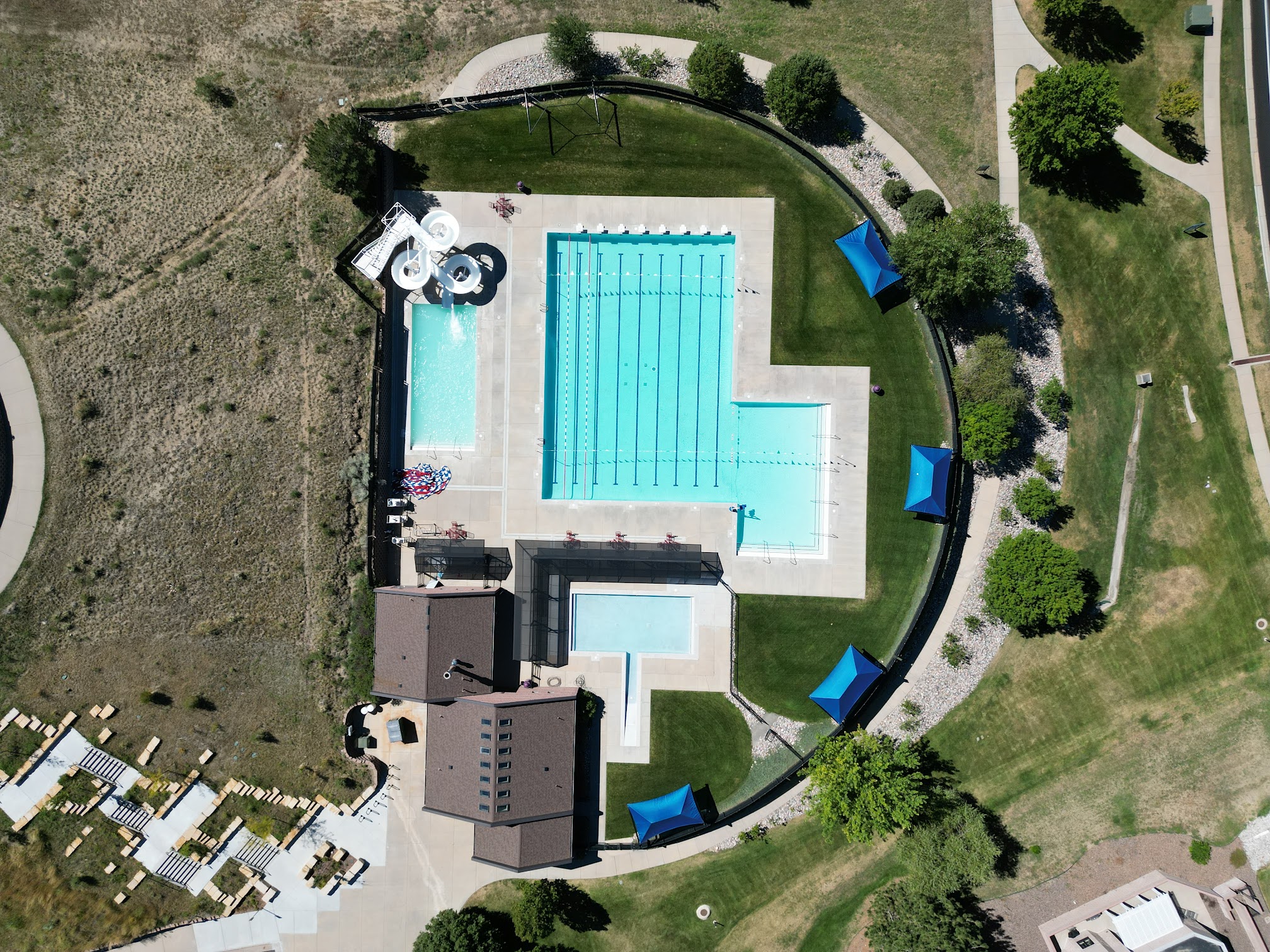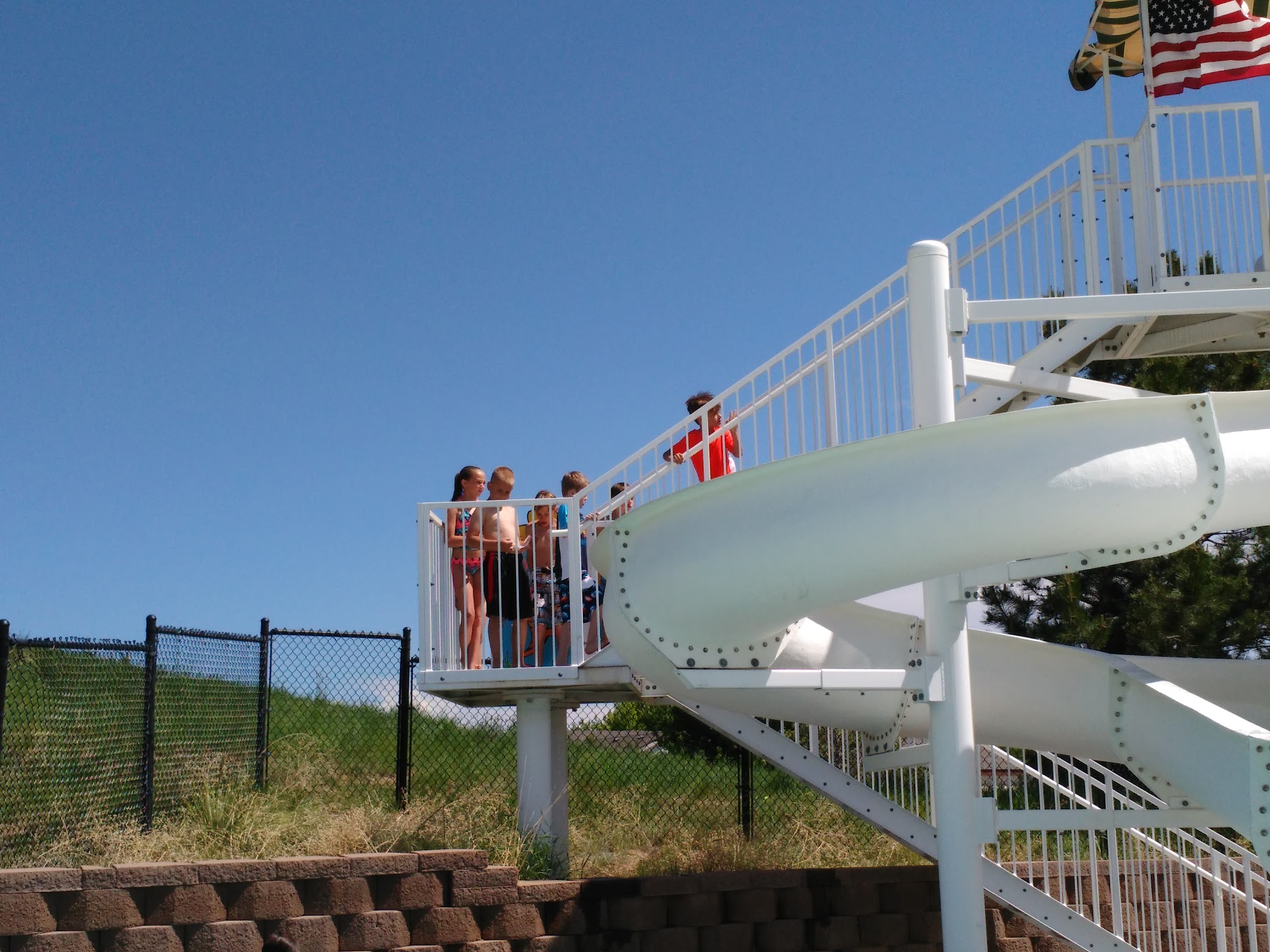 Fun pool to hang out with the kids. Nice big grassy area to sit, but no shade. The life guards are really good, and keep a close eye on the swimmers. It is cash only, so make sure to bring some. Thre is a water slide, but it wasn't working today while we were there. Overall, it's a nice pool.