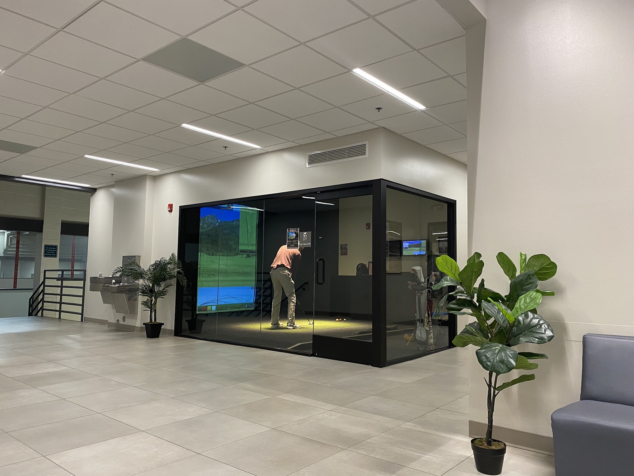 Recreation center offering tennis, racquetball, basketball, an indoor pool, and a golf simulator, plus a gym.