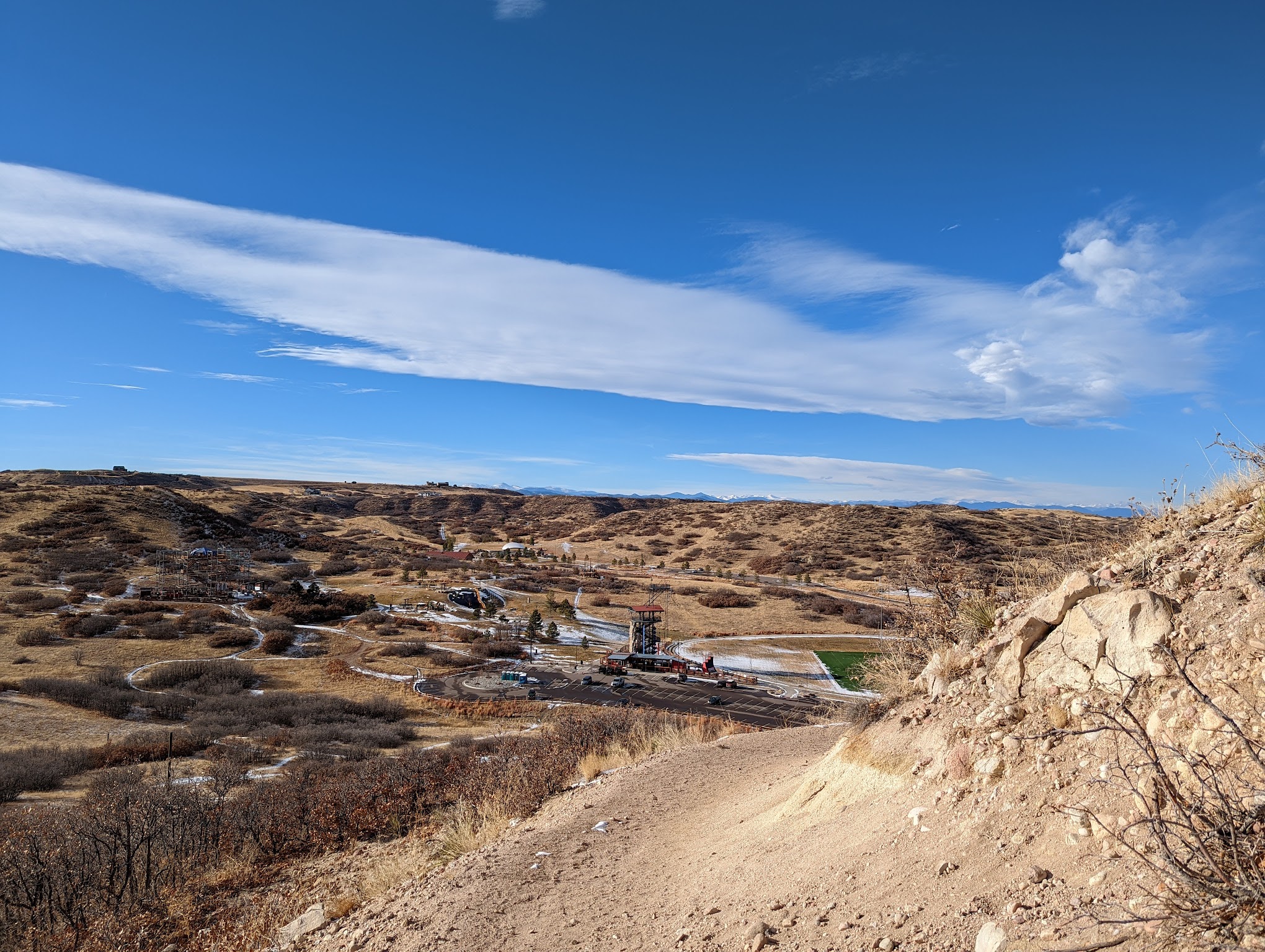 Very cool park. Looks like GREAT fun for kids.. I wanted to play on most of the stuff they have for kids! But nice hiking trails, if kinda basic except for the small mountain u can climb& overlook all of castle rock. That is def different. Easy to get to from interstate. And they have a huge indoor area which I honestly didn't check out but looks likev an indoor park for kids? Park worth checking out if ur driving by heading to it from Denver