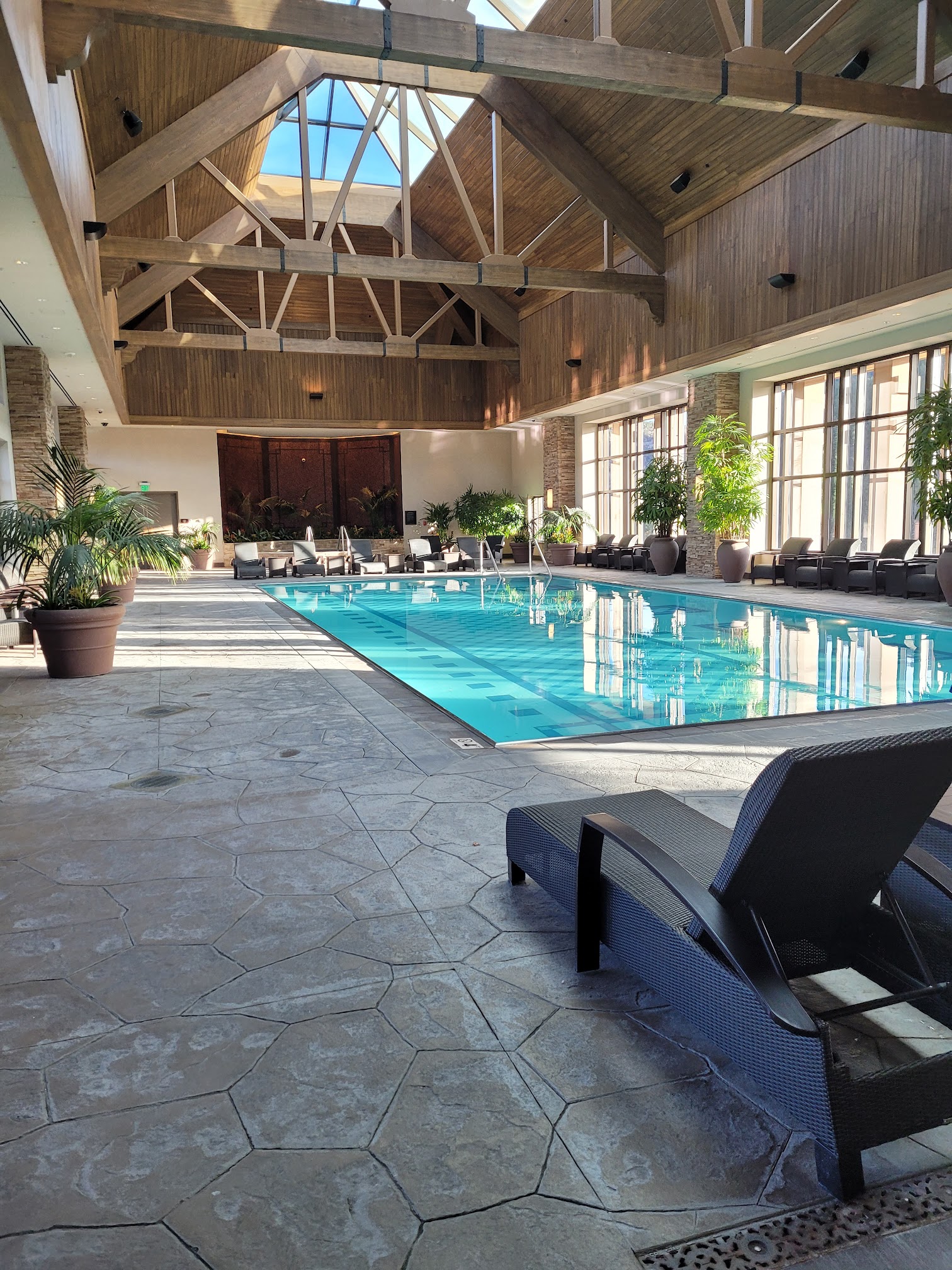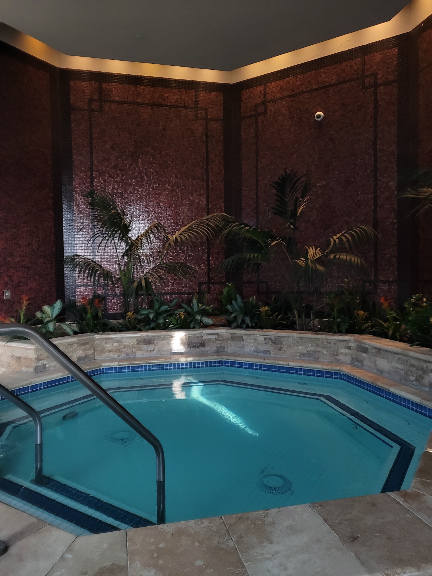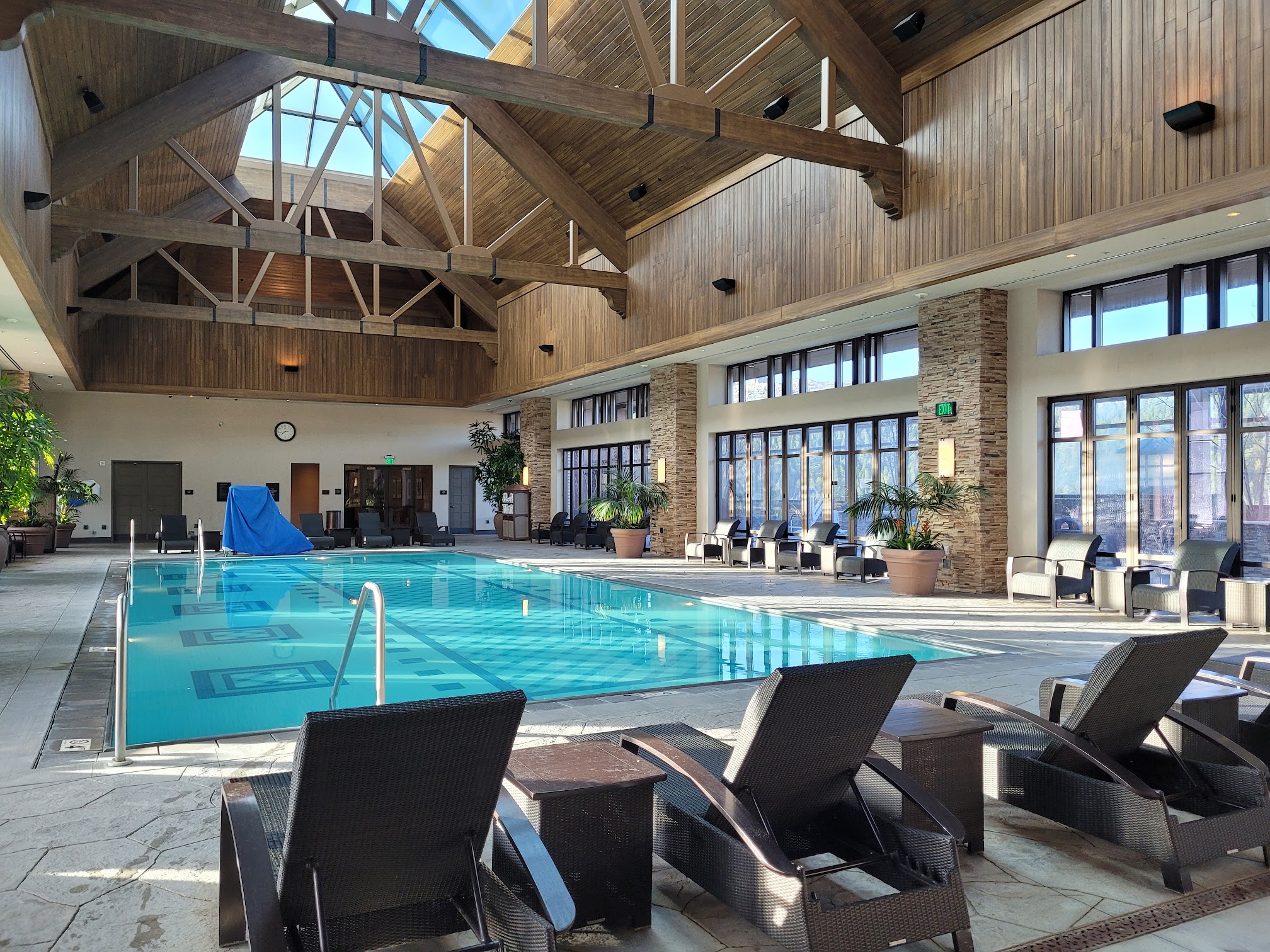 This is an amazing pool. It is located on the roof of the hotel with an amazing view of the mountains. The hot tub is also located on the roof, there is an inside and outside hot tub while the pool is indoors. I would highly recommend this place, it is clean and fun. Not to mention that they open up early so you can soak before you check out.