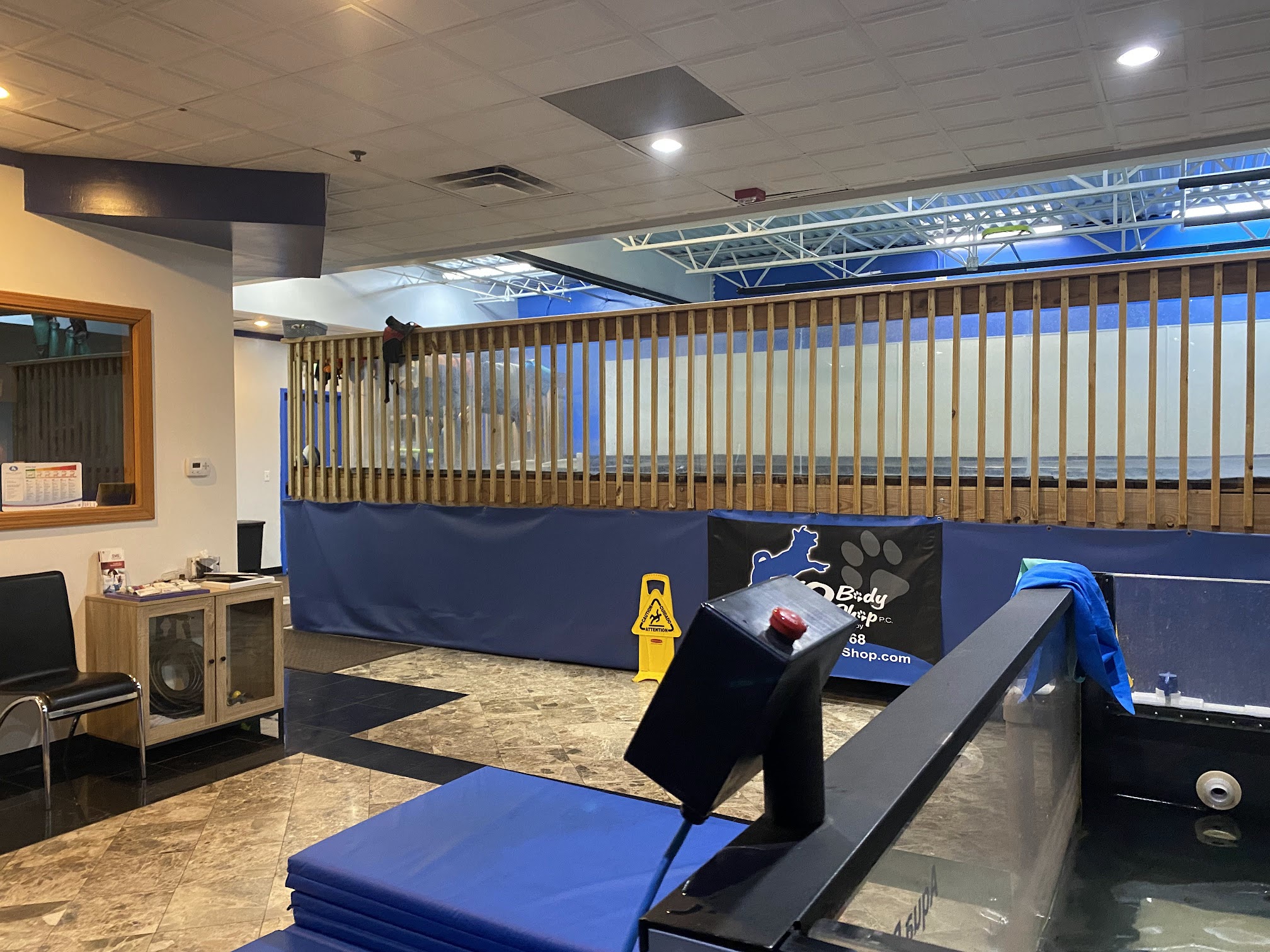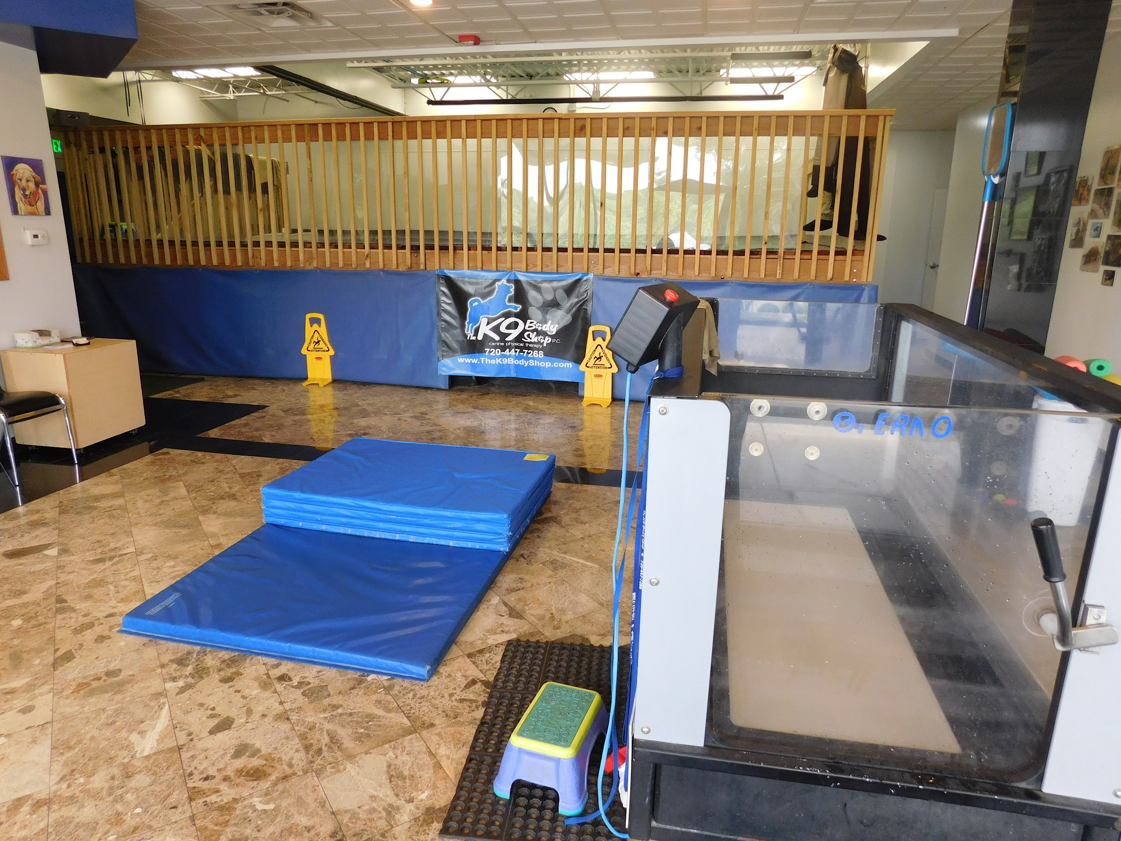 The K9 Body Shop PC in Arvada, CO, is a specialized facility offering canine hydrotherapy, rehabilitation, conditioning, and fitness services for dogs. They utilize both an underwater treadmill and a therapeutic pool to aid in recovery from injuries or surgery, as well as for general fitness and weight management.