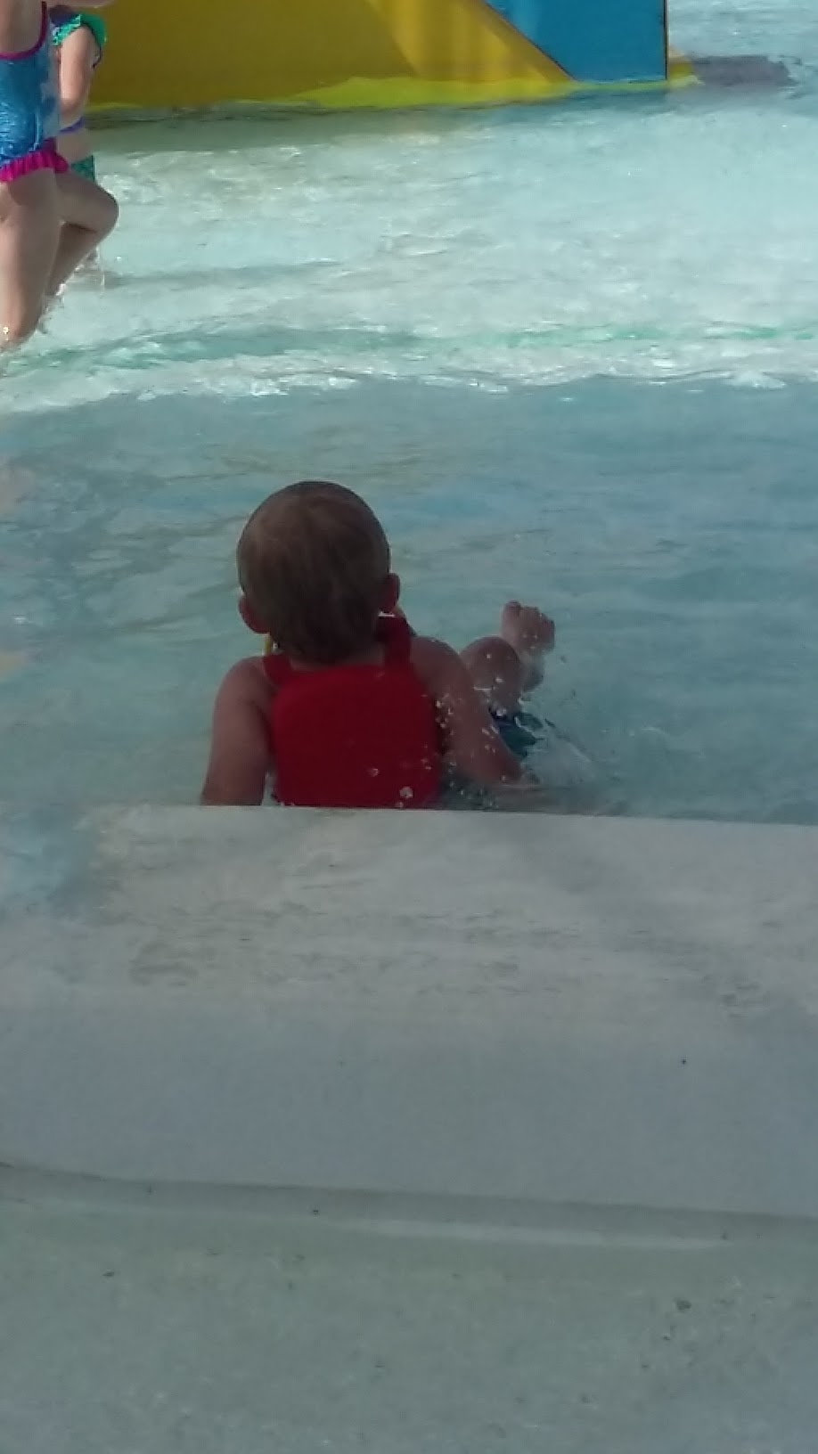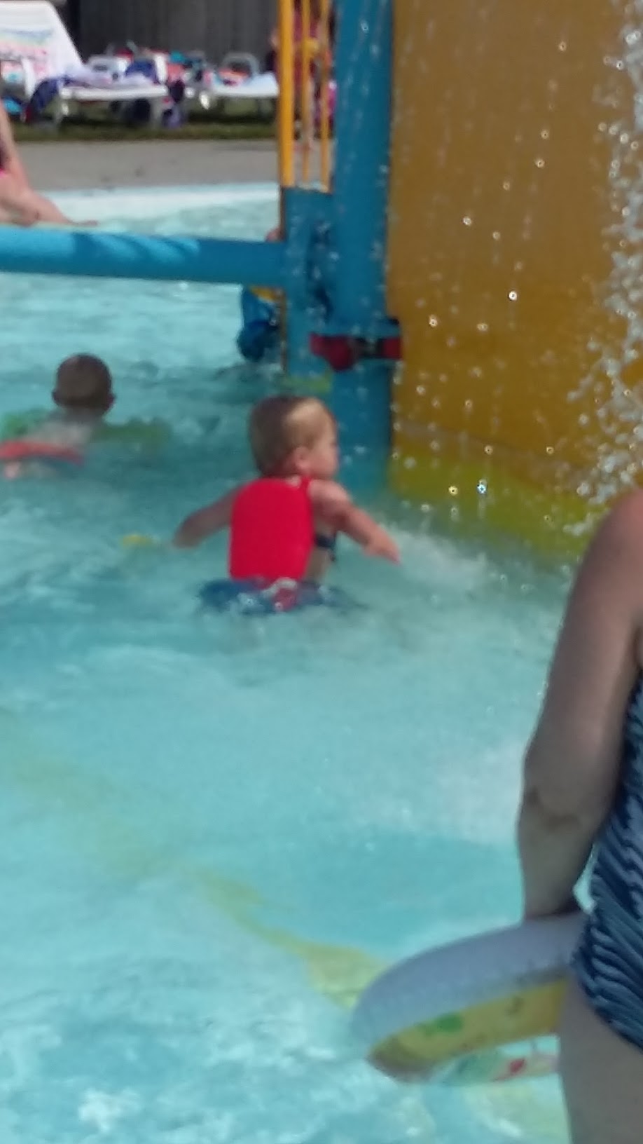 Just watching my daughter sitting on the side of the pool go down the slide and one of the male lifeguards thought it would be funny to tell some younger boys to jump in front of where I was sitting with my feet in the water to jump in front of me and plush me and got high fives from them. Didn’t think that was setting a good example.
