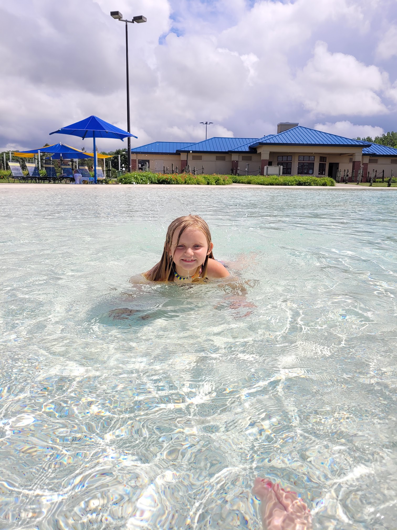 The beach style zero entry pool is perfect. Four stars because my daughter and I were next in line on a slide when the whistle blew and the lifeguard didn’t let us go down. It was the wide, medium sized slide. Probably a rule, but lame.