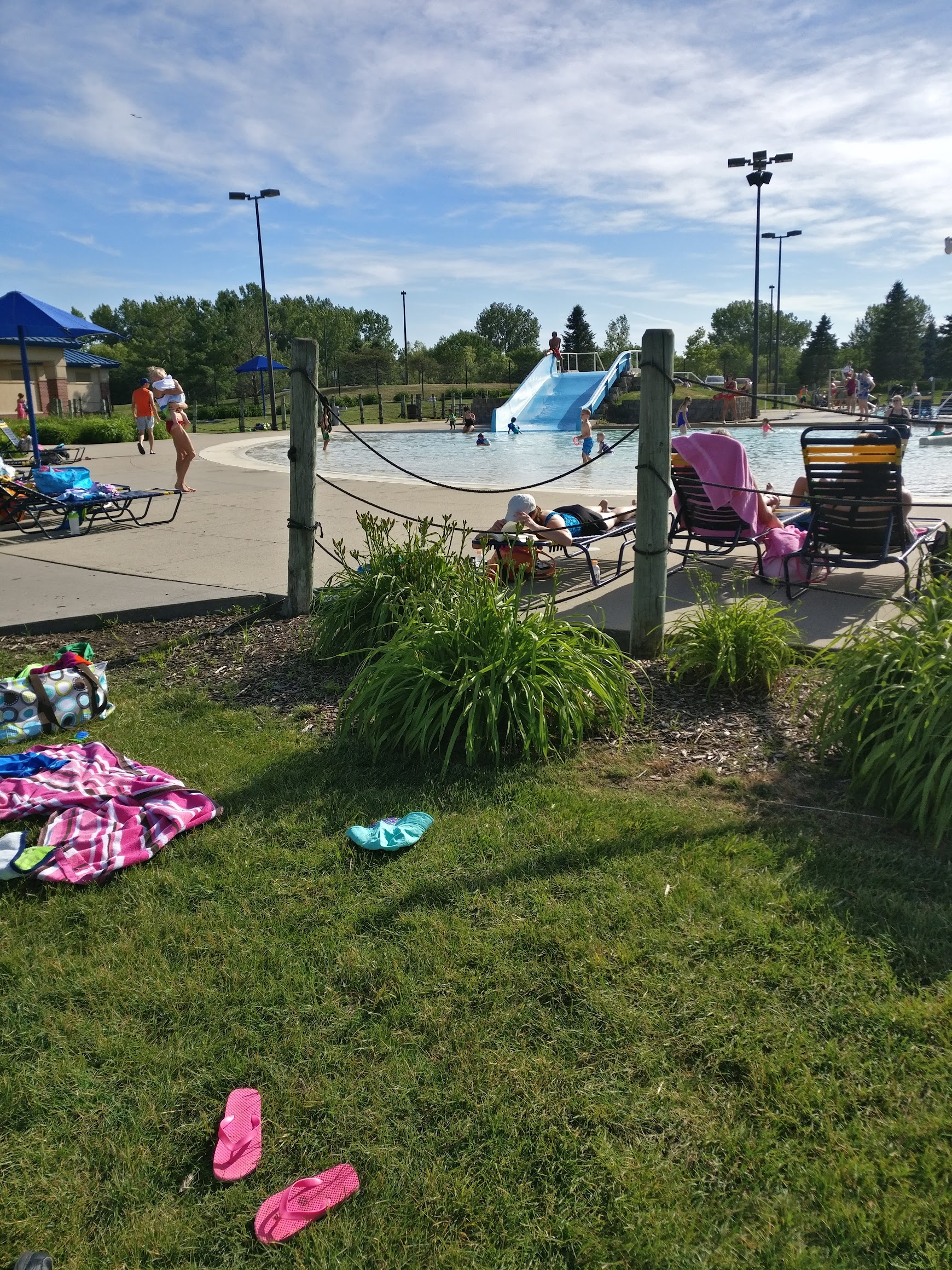 A fantastic pool to hit up on a hot day. Very reasonably priced and with a ton of room on seats and the grass to relax. There's a ton of shallow area for the toddlers, and even a wide shallow slide for them! There's bigger slides for the bigger kids with height requirements. And there's even a splash pad to play in when it's lifeguard break time. Lifeguards are plentiful and attentive, always watching and in every part of the pool, so it feels very safe