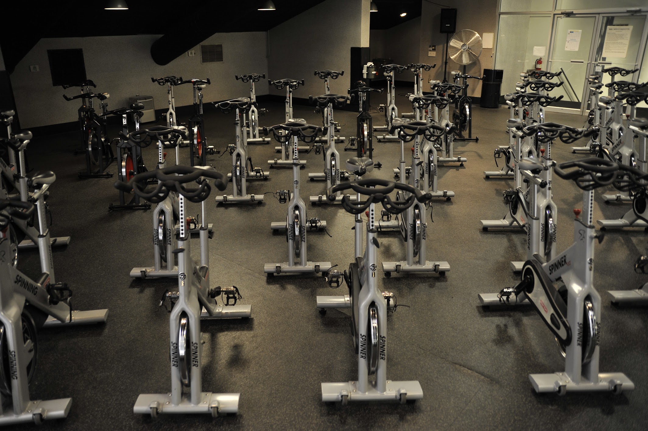 Indoor wellness center featuring classes, pools and a fitness area with cardio and weight machines.
