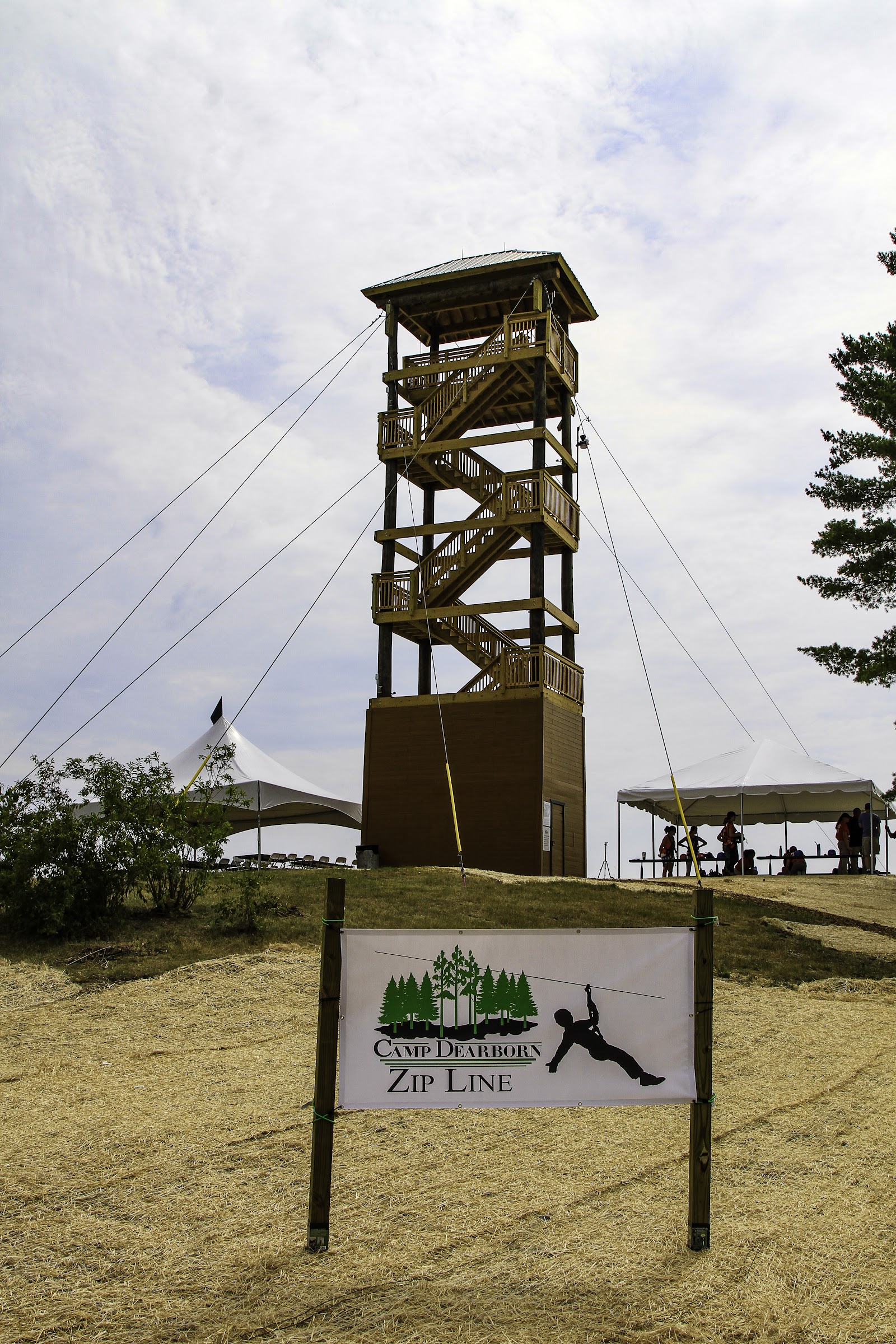 Camp Dearborn features two large swimming pools that are heated for visitor comfort. Specific temperature details for these pools are not publicly available.
