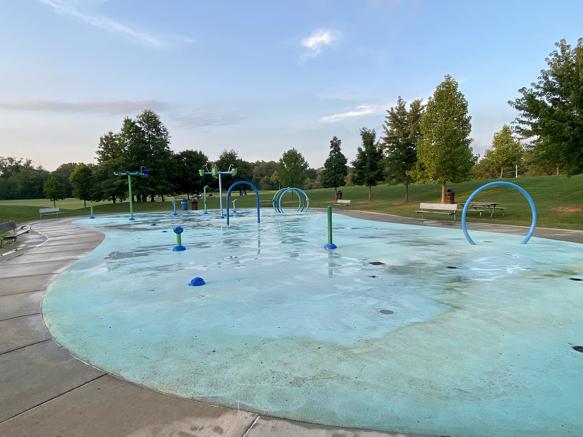 My kids love this place. Picnic tables nearby, changing rooms, decent bathrooms, and plenty of space to play for hours at the splash pad and playground.