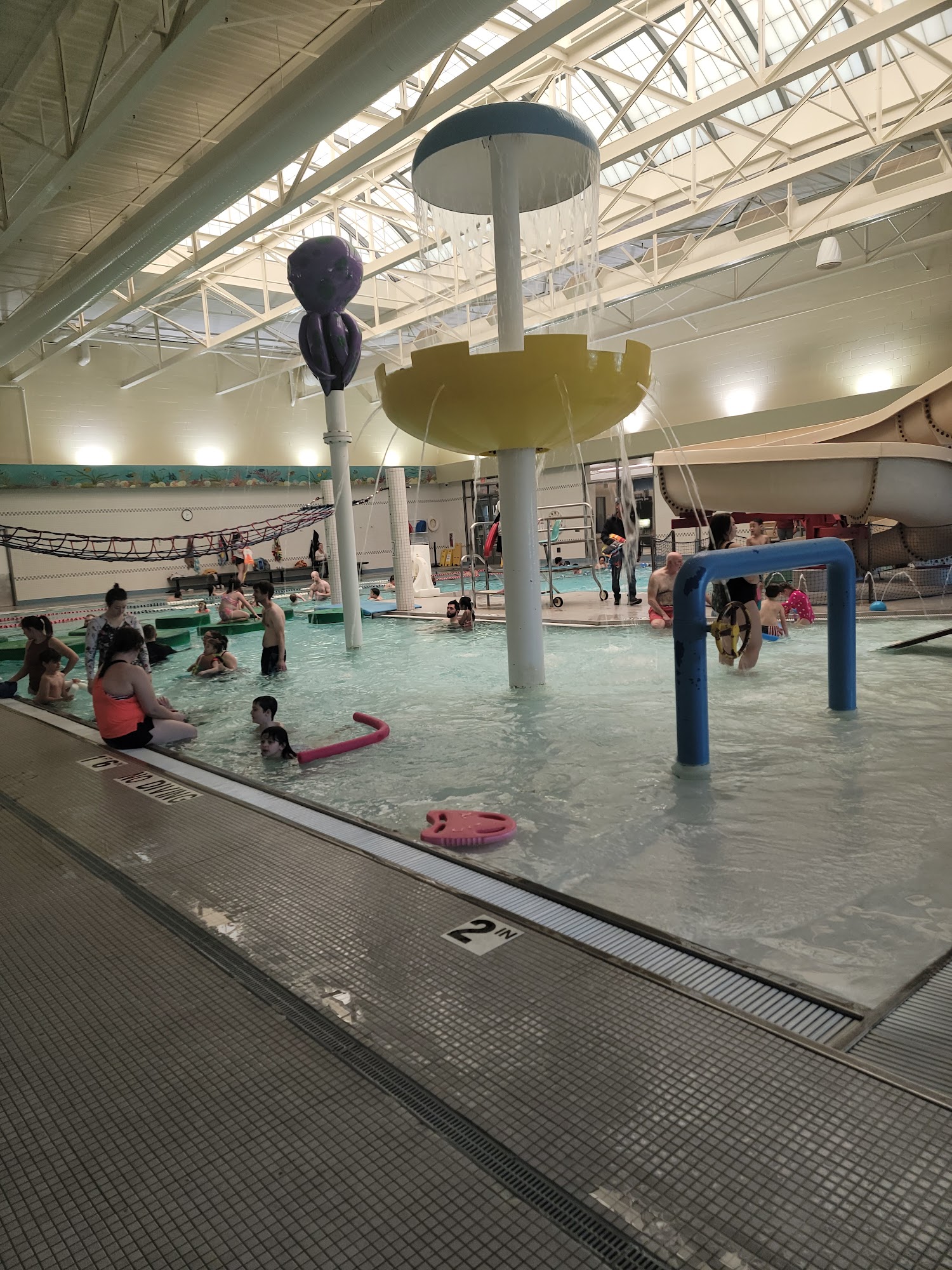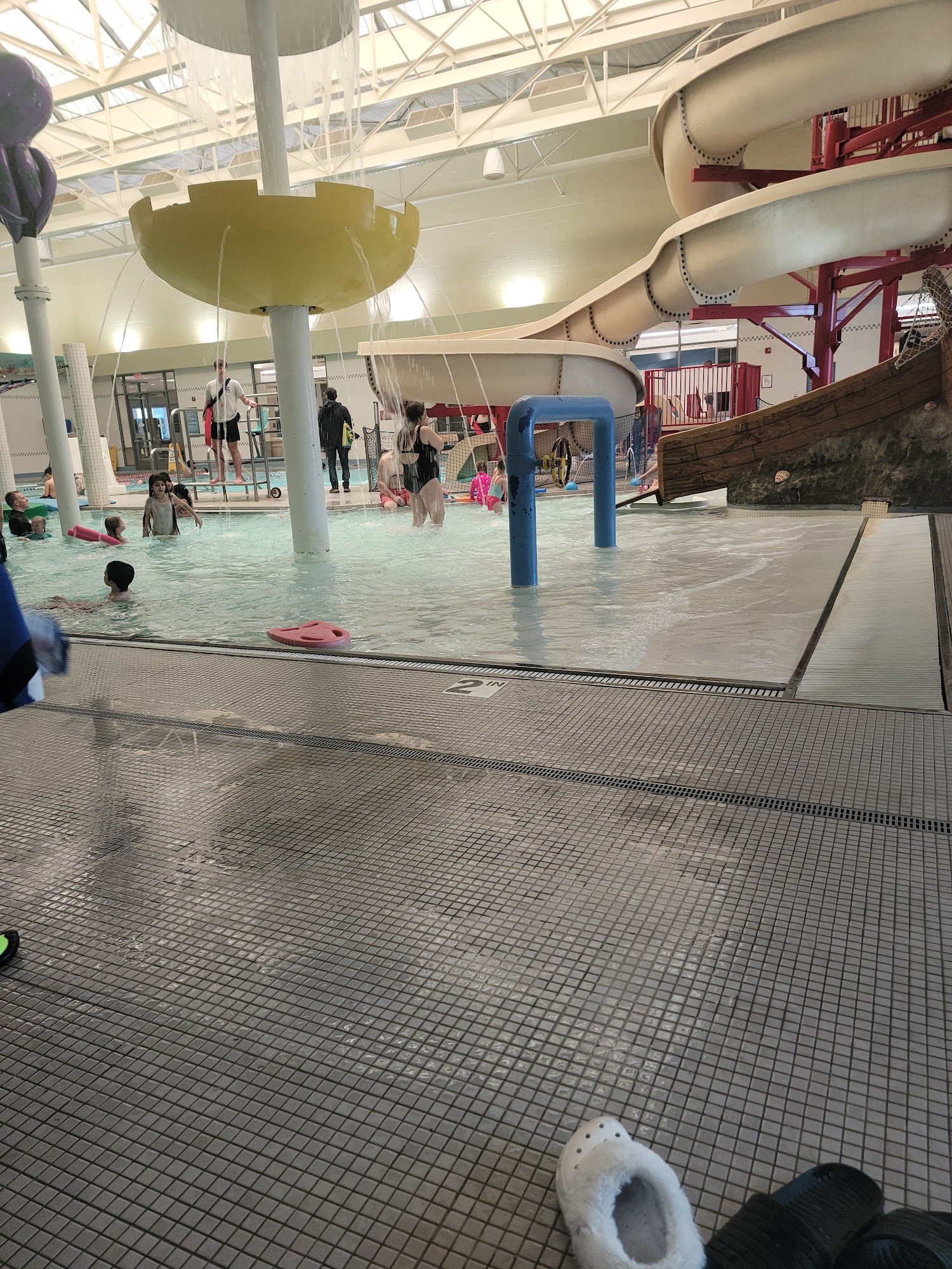 perfect for a rainy or cold winter day! my son is 2 and had an awesome time. the toddler area has a fun slide and fountains around to play in and shallow enough for young kids. There’s also a couple other waterslides for the older kids and a lap pool. Water was heated and the facilities were very clean.