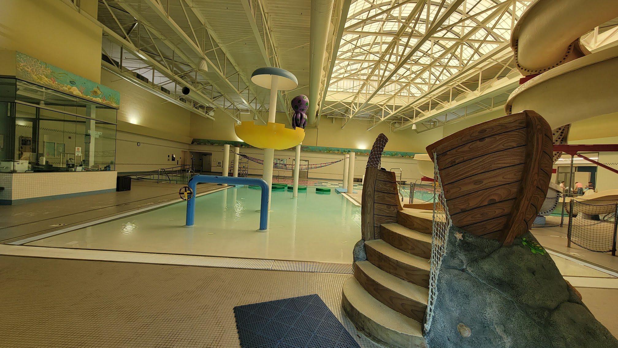 What are people saying (AI review summary)? This small water park is generally well-regarded as a fun option, especially for young children and toddlers, featuring a shallow play area with fountains and a kiddie slide. It also includes additional water slides for older kids/teens and a lap pool for adults, providing a mix for various age groups. While some reviewers highlighted it as a great activity for cold or rainy days and praised its clean facilities, there's conflicting feedback on water temperature; several guests reported it as cold, while one noted it was heated. Strong chlorine was also mentioned by one reviewer. Day passes are priced at $10 for residents and $15 for non-residents (ages 3+), a cost some consider high compared to other cities but affordable locally, with a suggestion for senior discounts. Overall, while enjoyable for younger kids, concerns about water temperature and perceived value were raised.