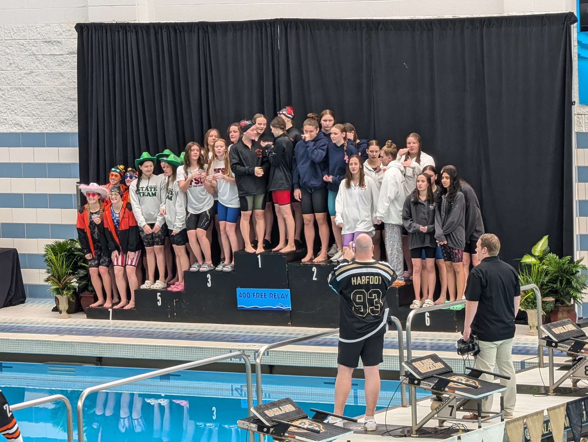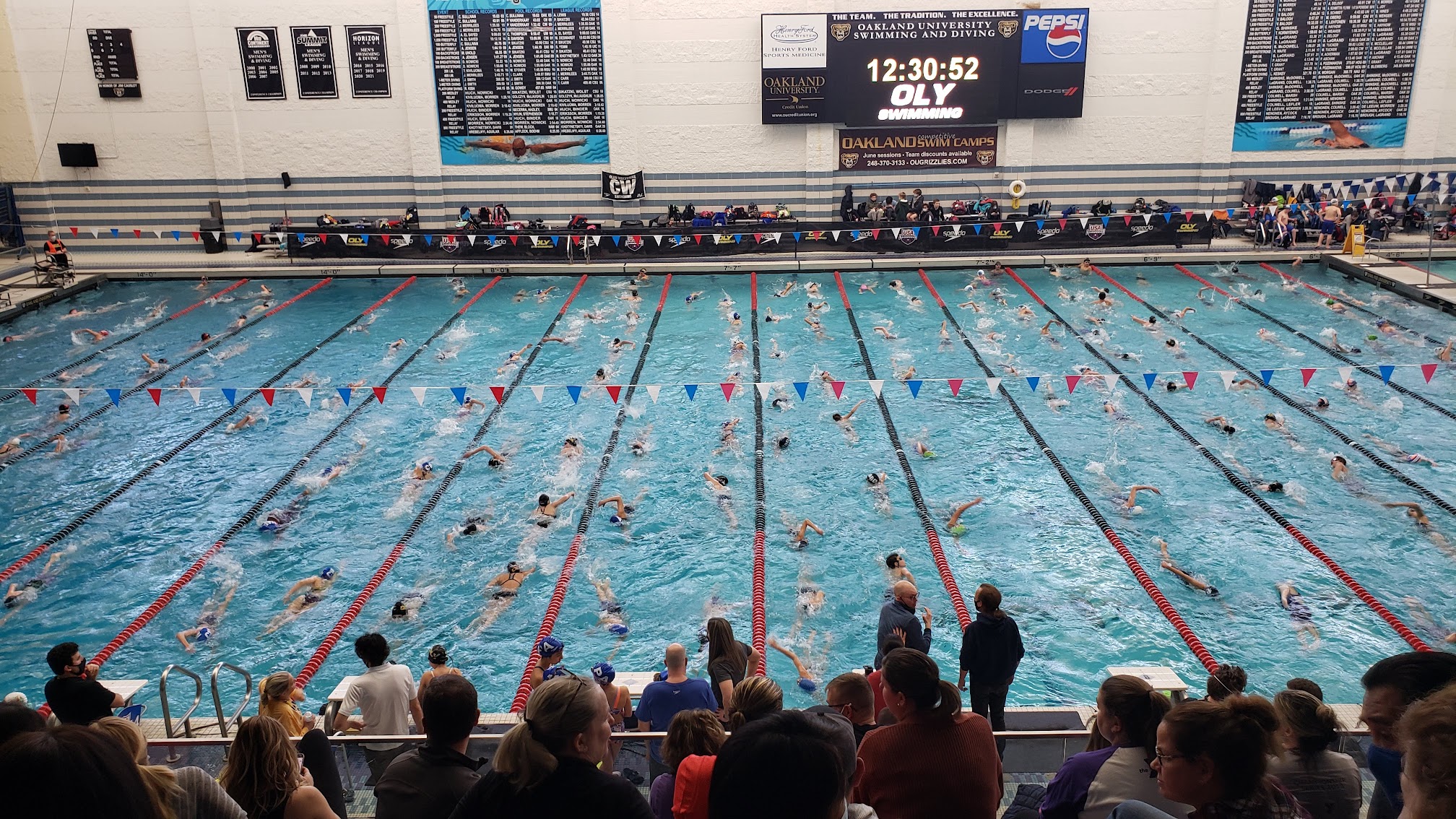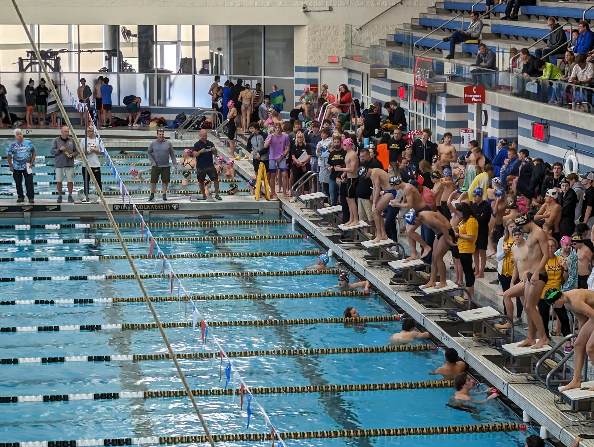 Great pool, water temperature was unfortunately a little cold. There was very little walking space with all the bleachers. Lockeroomsbwere nice, pool deck was kinda slippery at times. The scoreboard is also somewhat misfortunely placed. Hard for everyone to see it.
